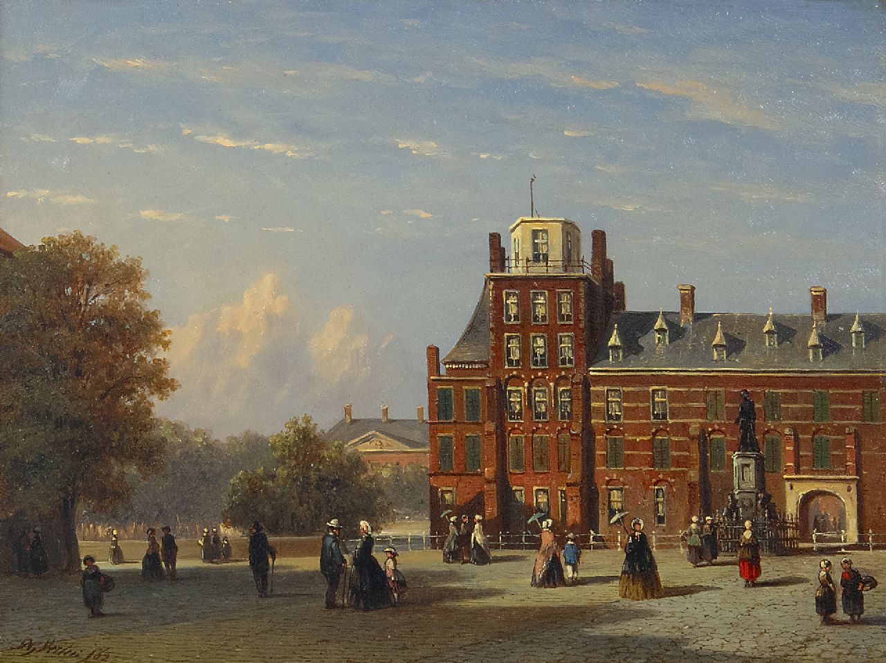 Petrus Gerardus Vertin kunstwerk • schilderij • te koop Gezicht op het Buitenhof in Den Haag, gezien naar het Stadhouderlijk Kwartier