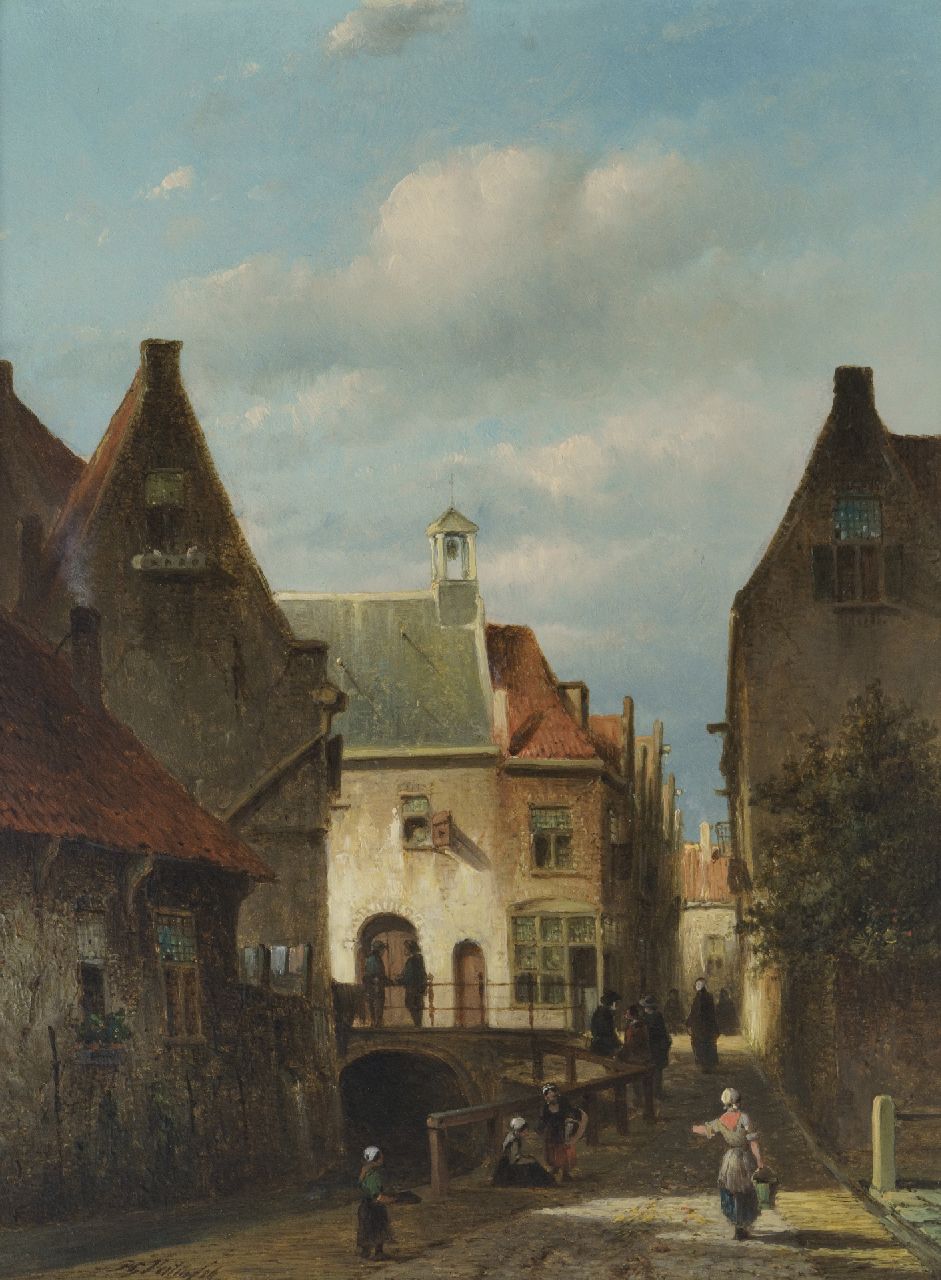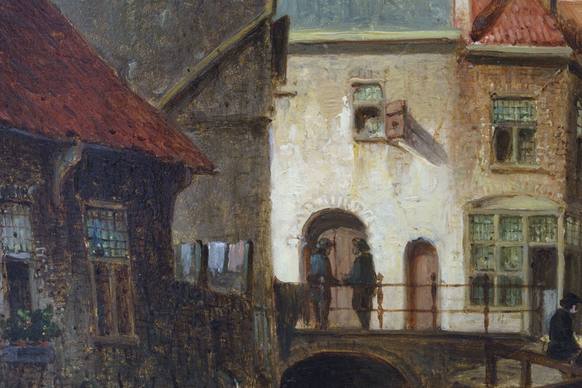 Petrus Gerardus Vertin kunstwerk • schilderij • voorheen te koop Gezicht op het Zakkendragershuisje en het Achterwater te Delfshaven, Rotterdam