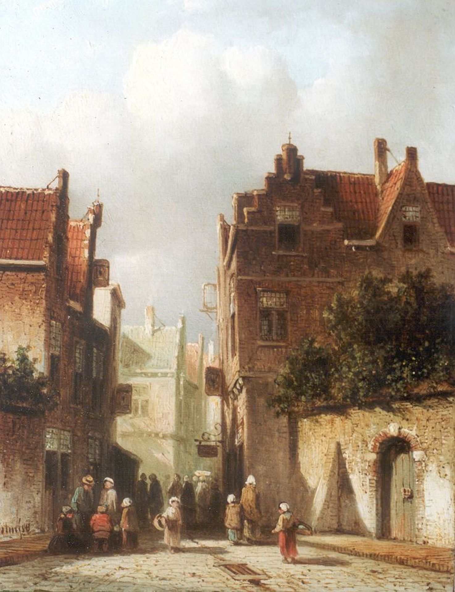 Petrus Gerardus Vertin kunstwerk • schilderij • voorheen te koop Hollands dorpsstraatje met figuren