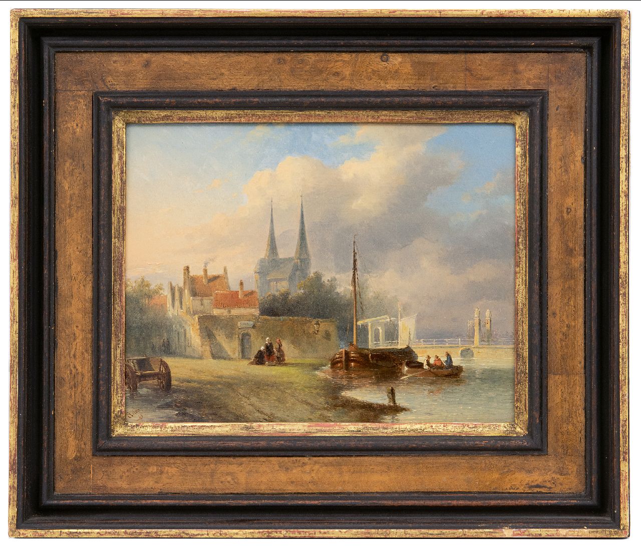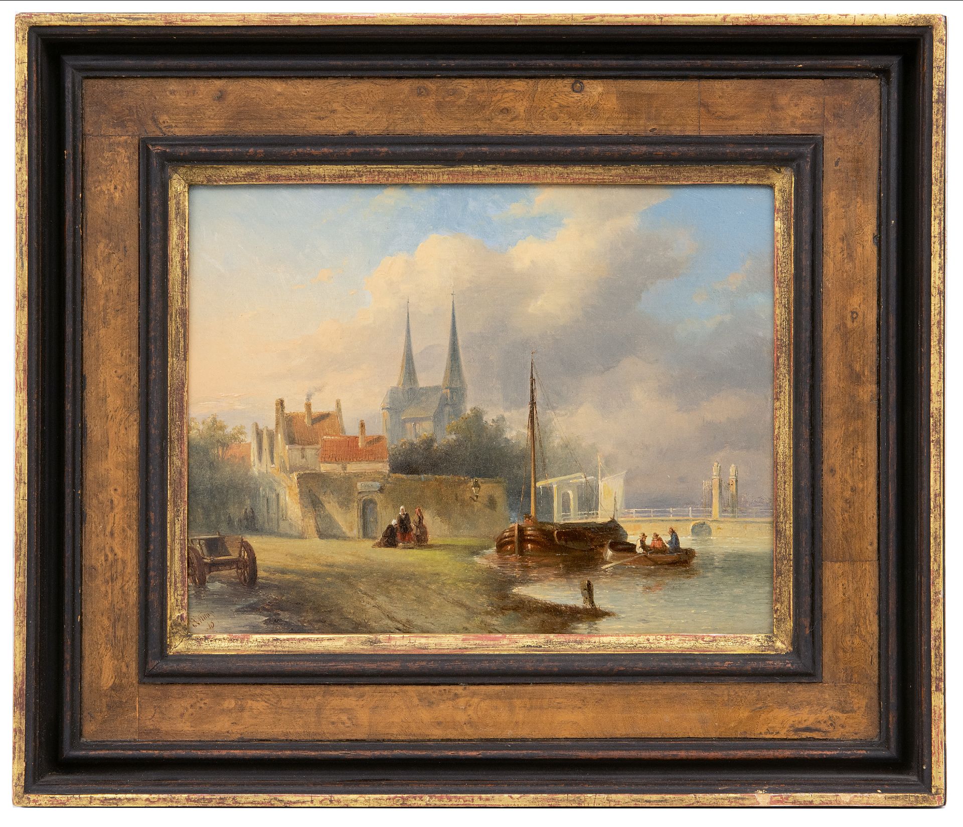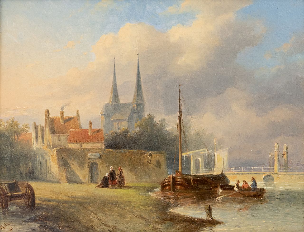 Petrus Gerardus Vertin kunstwerk • schilderij • voorheen te koop Hollands stadje aan een rivier