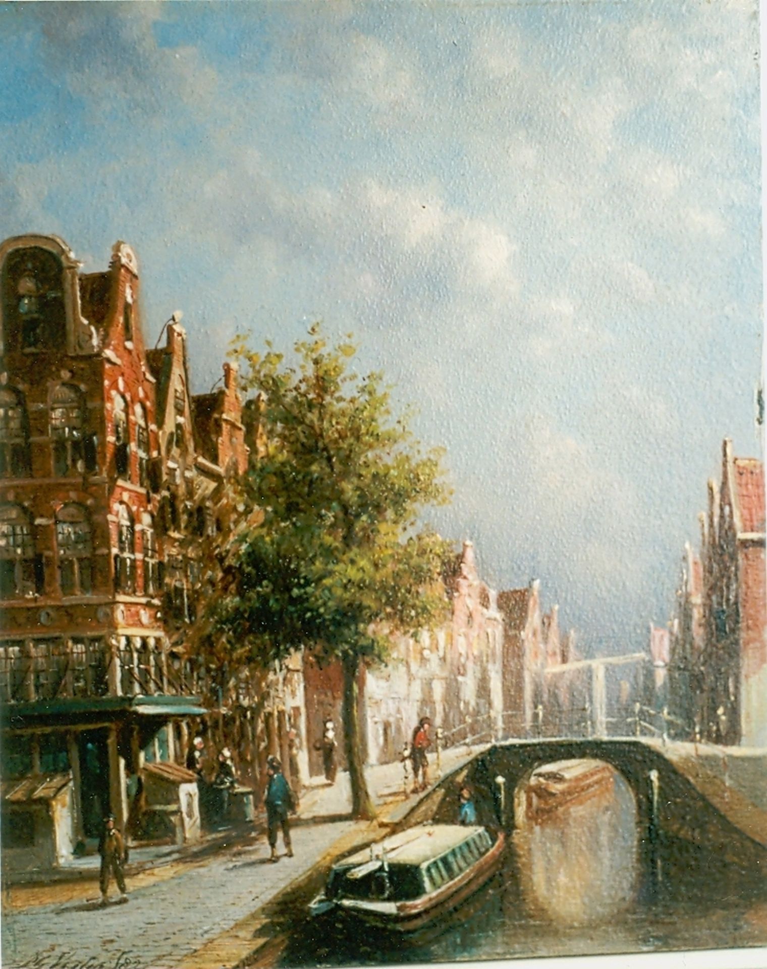 Petrus Gerardus Vertin kunstwerk • schilderij • voorheen te koop Stadsgezicht met gracht en trekschuit