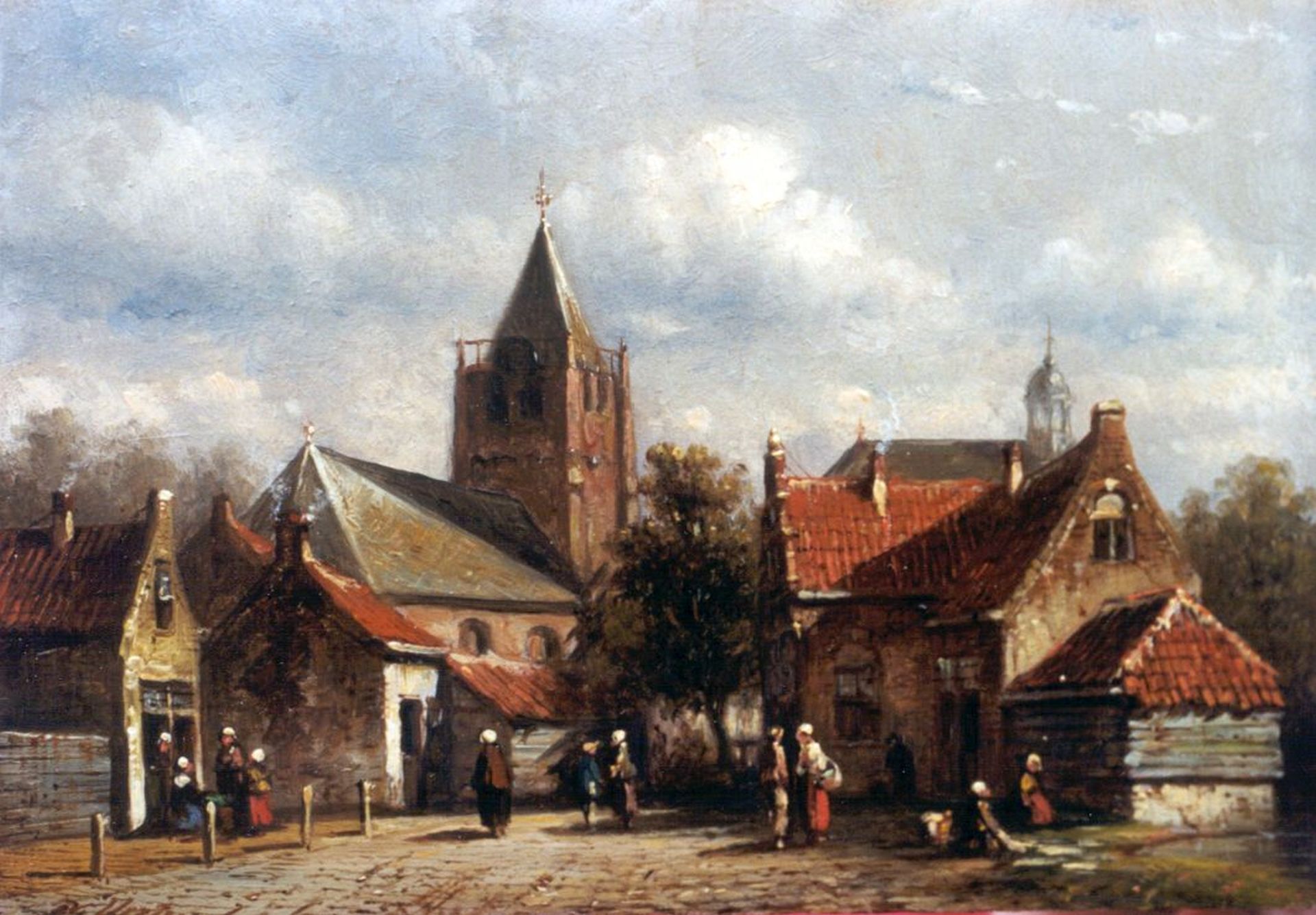 Petrus Gerardus Vertin kunstwerk • schilderij • voorheen te koop Stadsgezicht met vele figuren