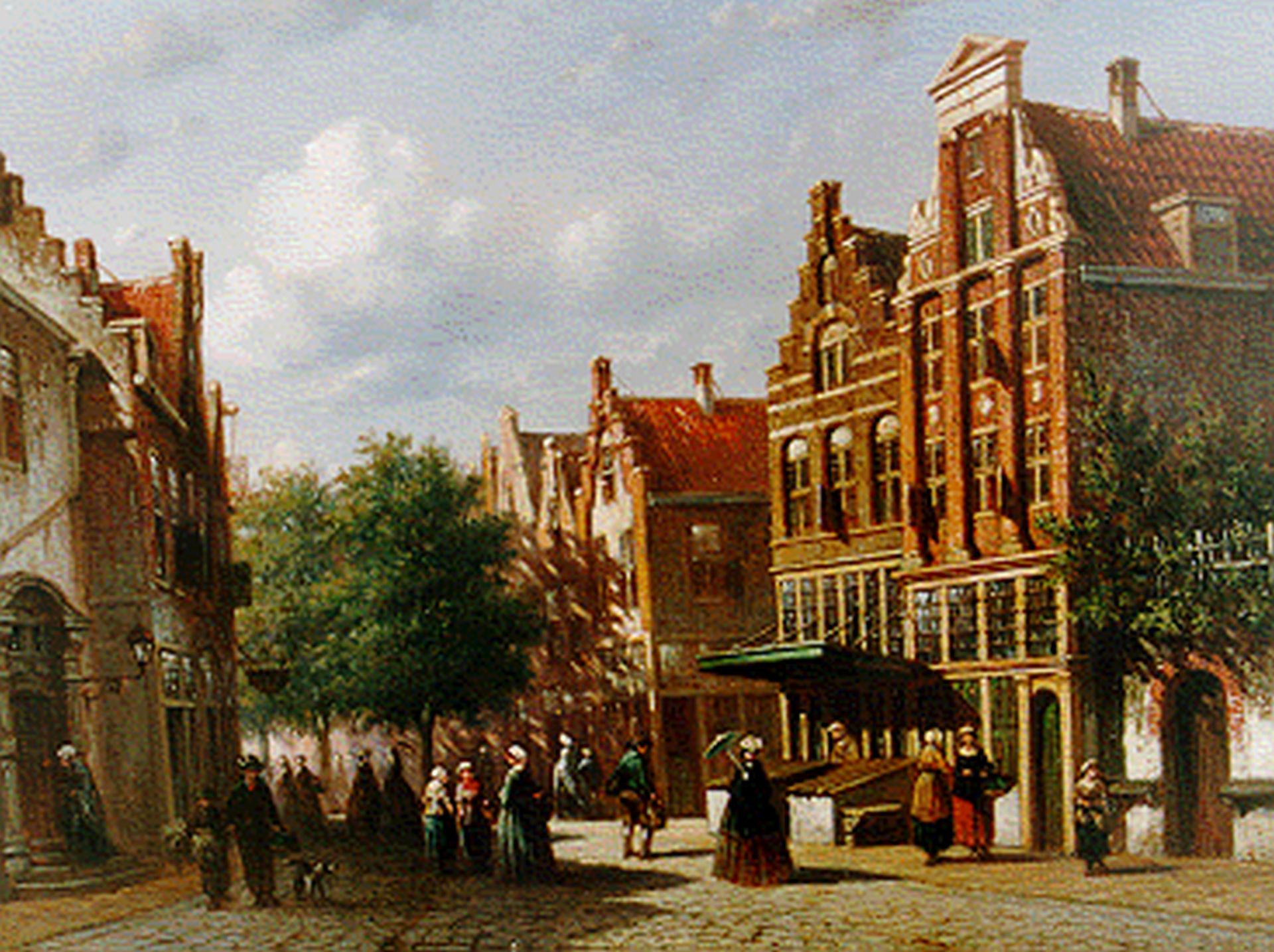 Petrus Gerardus Vertin kunstwerk • schilderij • voorheen te koop Stadsgezichtje met vele figuren
