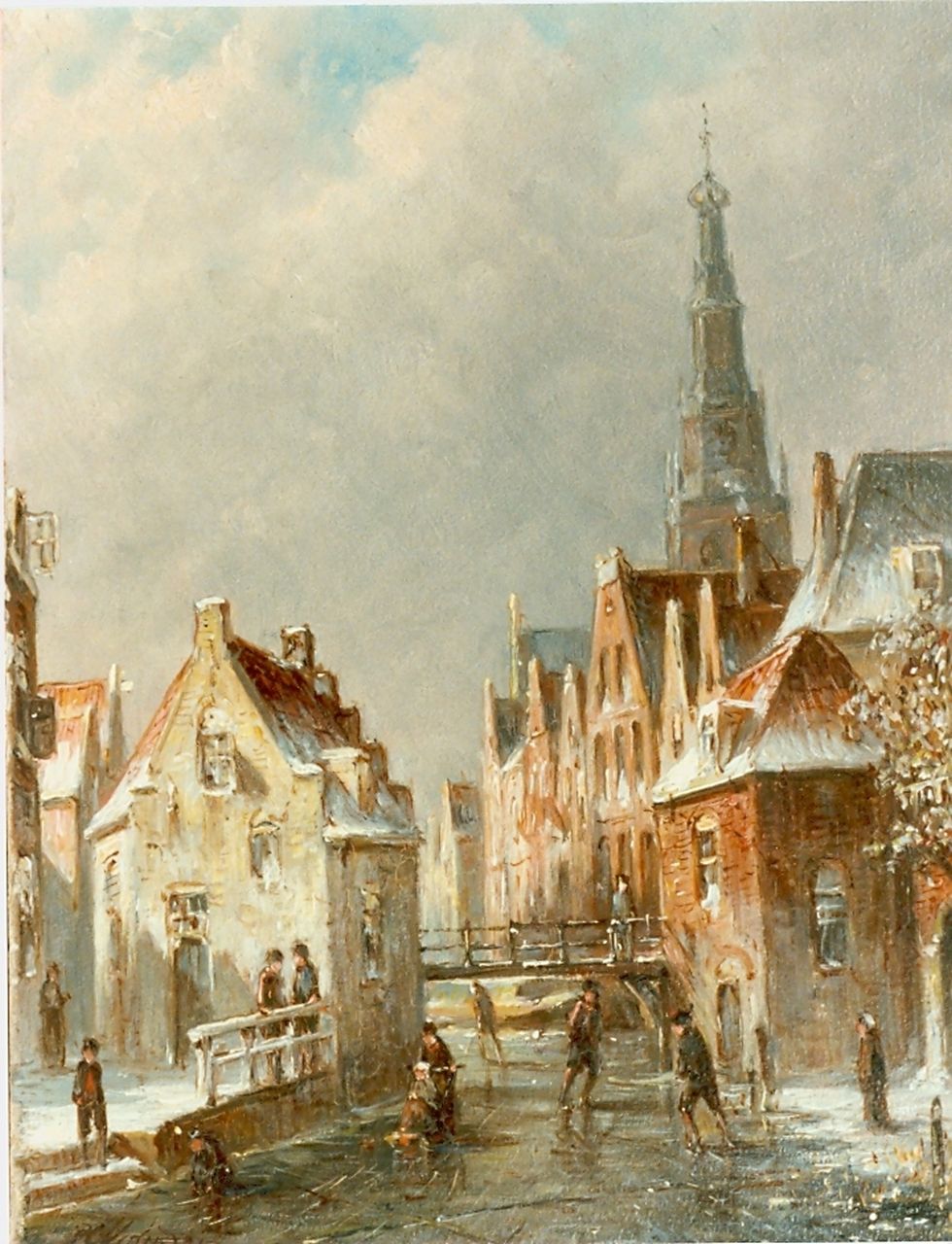 Petrus Gerardus Vertin kunstwerk • schilderij • voorheen te koop Stadsgracht met schaatsers