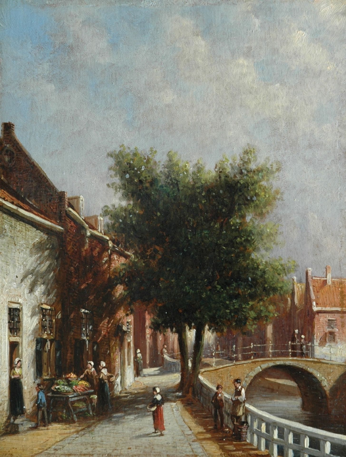 Petrus Gerardus Vertin kunstwerk • schilderij • voorheen te koop Stadsgrachtje met groentestal, mogelijk Enkhuizen