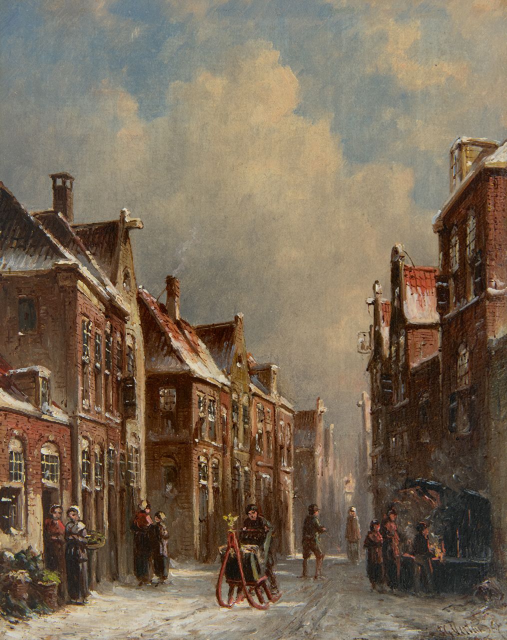 Petrus Gerardus Vertin kunstwerk • schilderij • voorheen te koop Winters dorpsstraatje