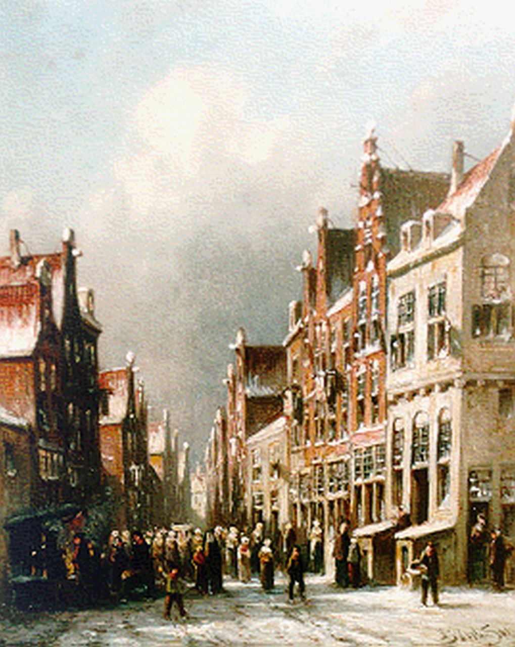 Petrus Gerardus Vertin kunstwerk • schilderij • voorheen te koop Winters stadsgezicht met figuren