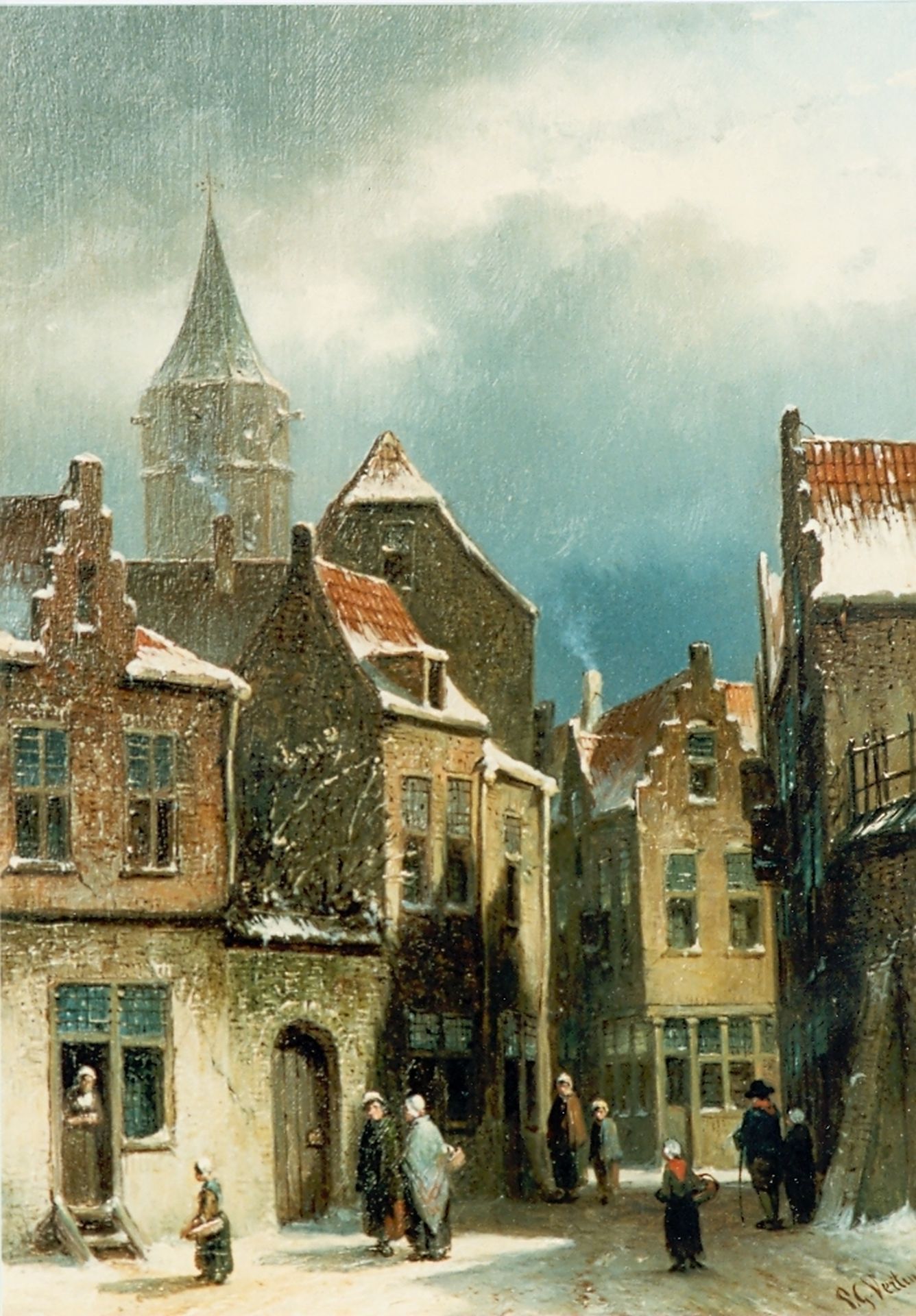 Petrus Gerardus Vertin kunstwerk • schilderij • voorheen te koop Winters stadsgezichtje met kerk