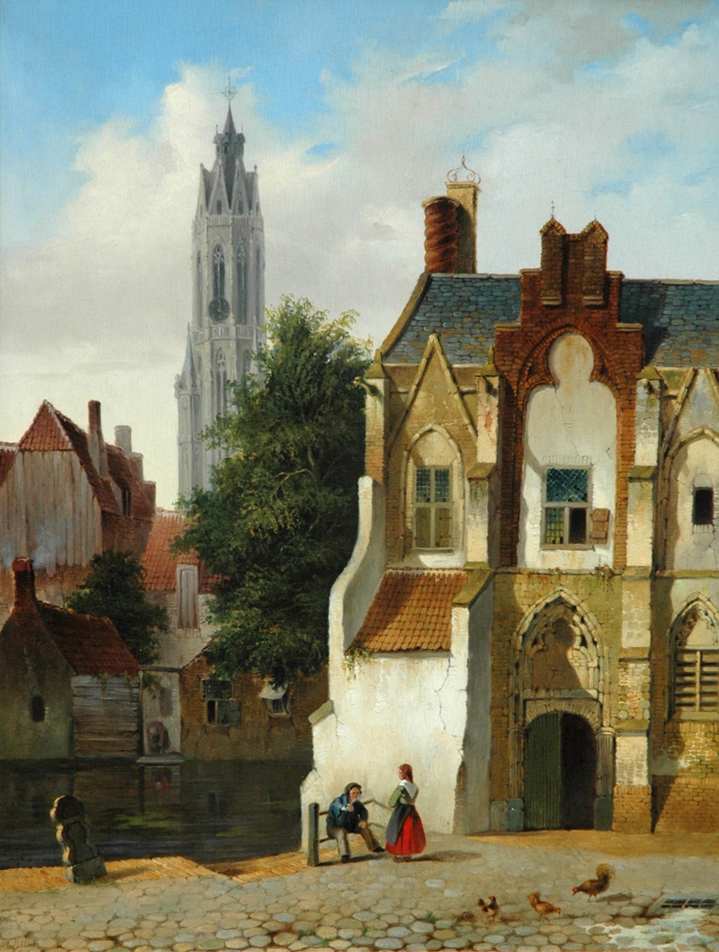 Petrus Gerardus Vertin kunstwerk • schilderij • voorheen te koop Zomers gezicht op Delft - met de Nieuwe Kerk (pendant van 9393 - alleen tezamen)
