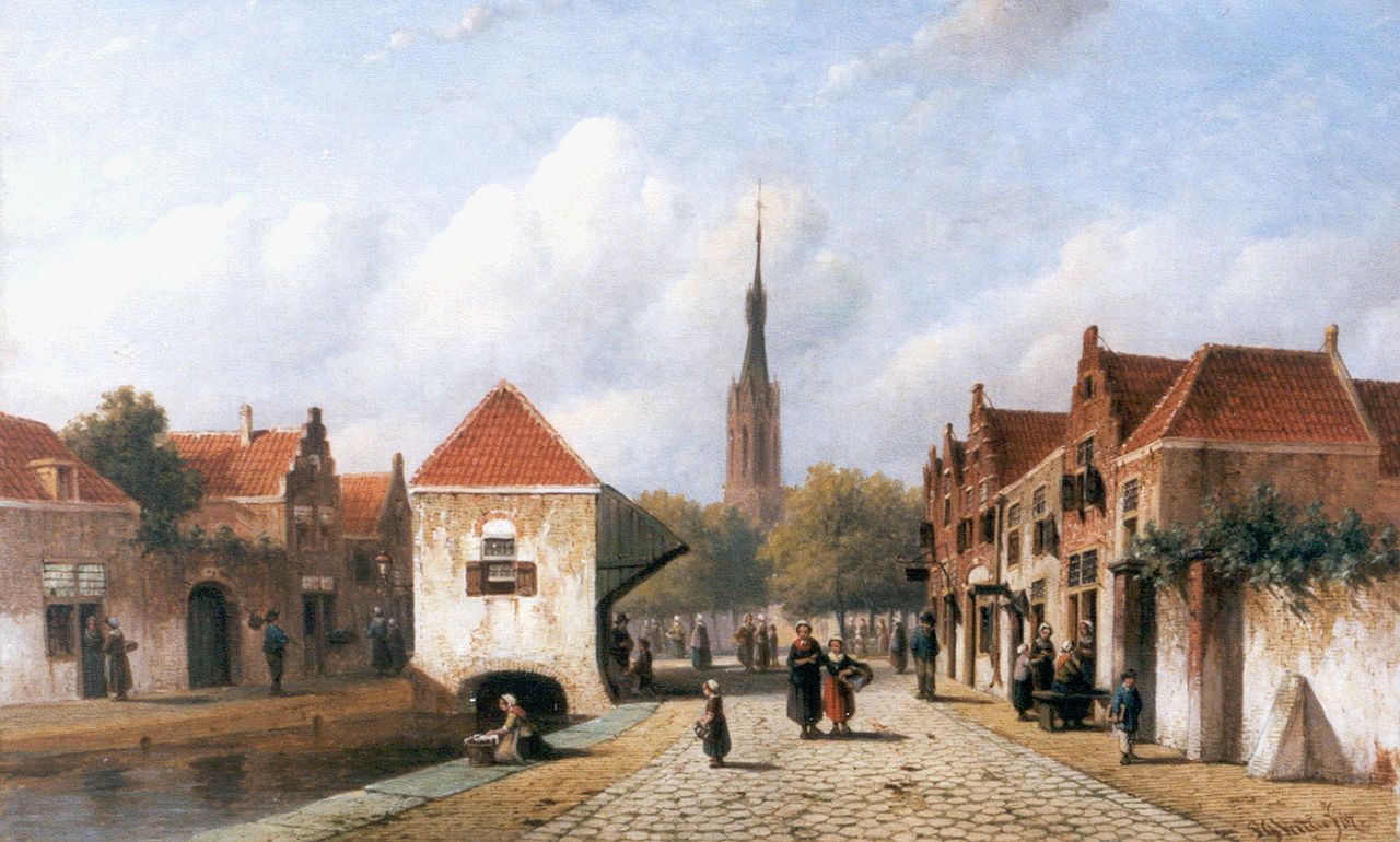 Petrus Gerardus Vertin kunstwerk • schilderij • voorheen te koop Zomers gezicht op Delft met de Nieuwe Kerk