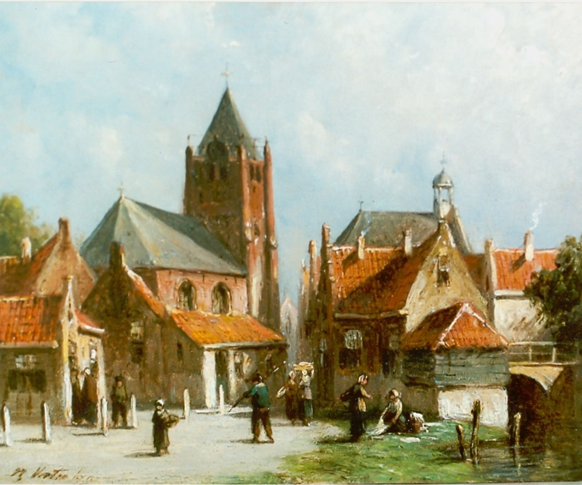 Petrus Gerardus Vertin kunstwerk • schilderij • voorheen te koop Zomers stadsgezicht