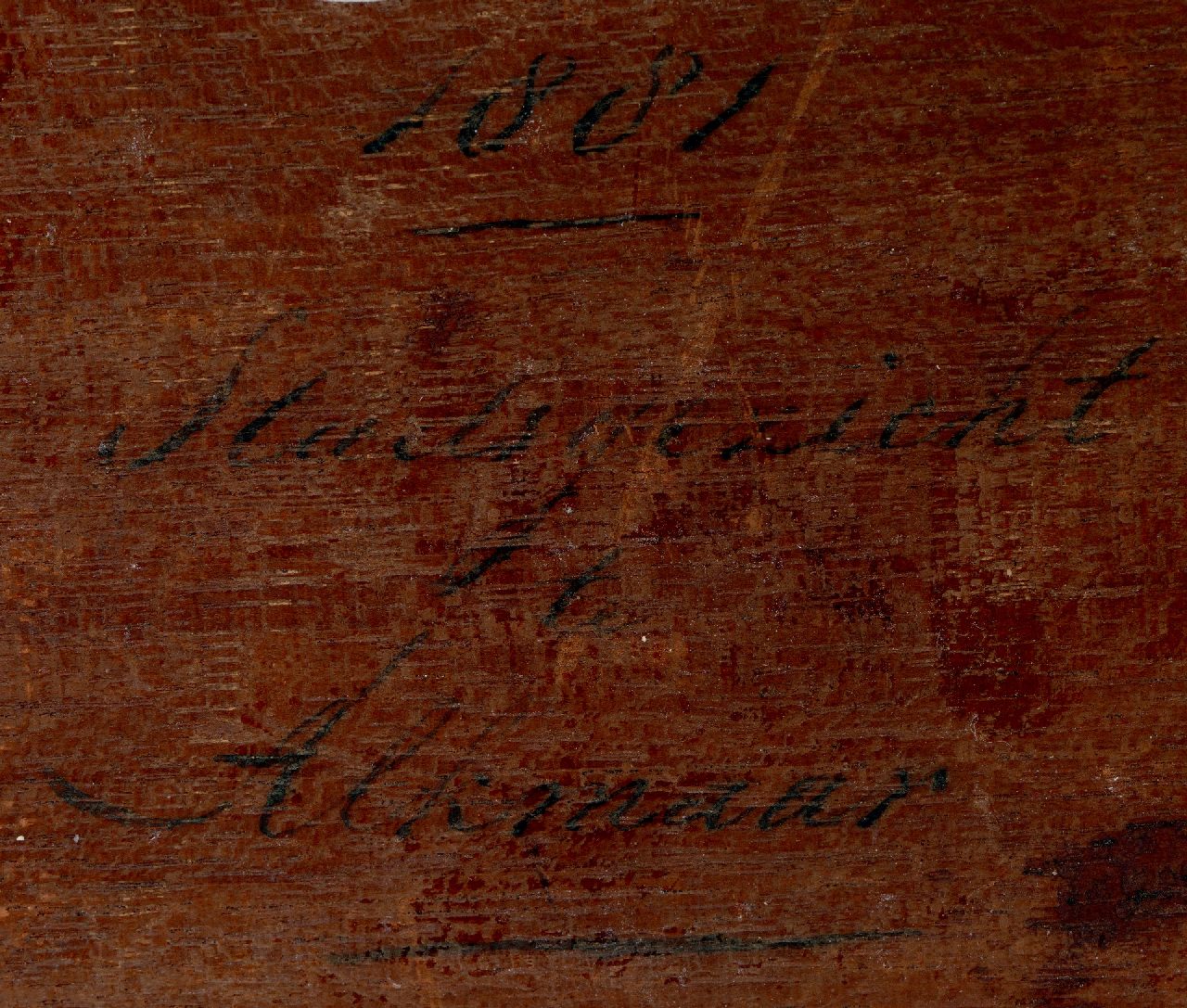 olieverf op paneel 22,7 x 19,4 cm, gesigneerd rechtsonder en verso gedateerd 1881