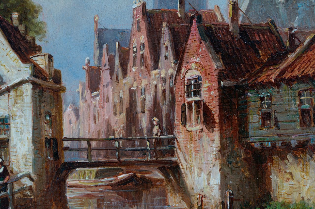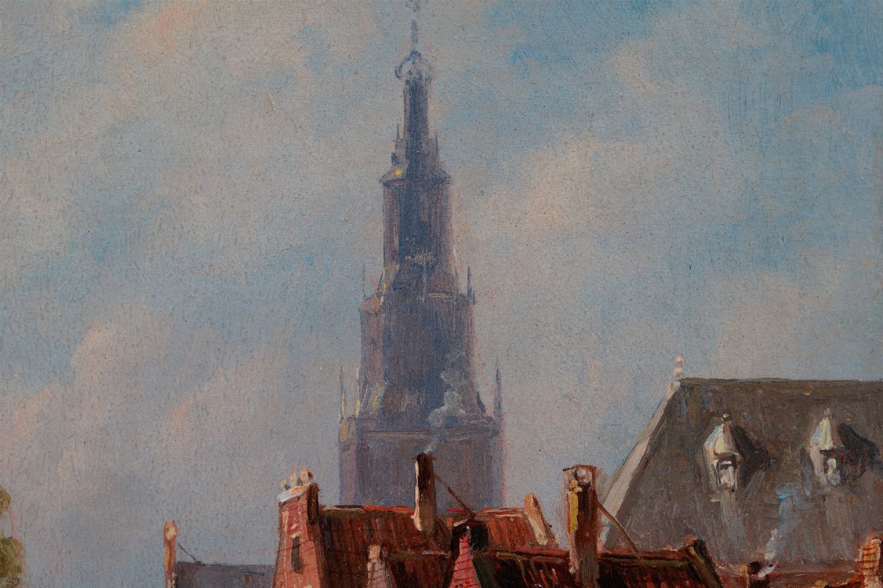 Petrus Gerardus Vertin kunstwerk • schilderij • voorheen te koop Zonnig stadsgrachtje, de Alkmaarse Waagtoren op de achtergrond