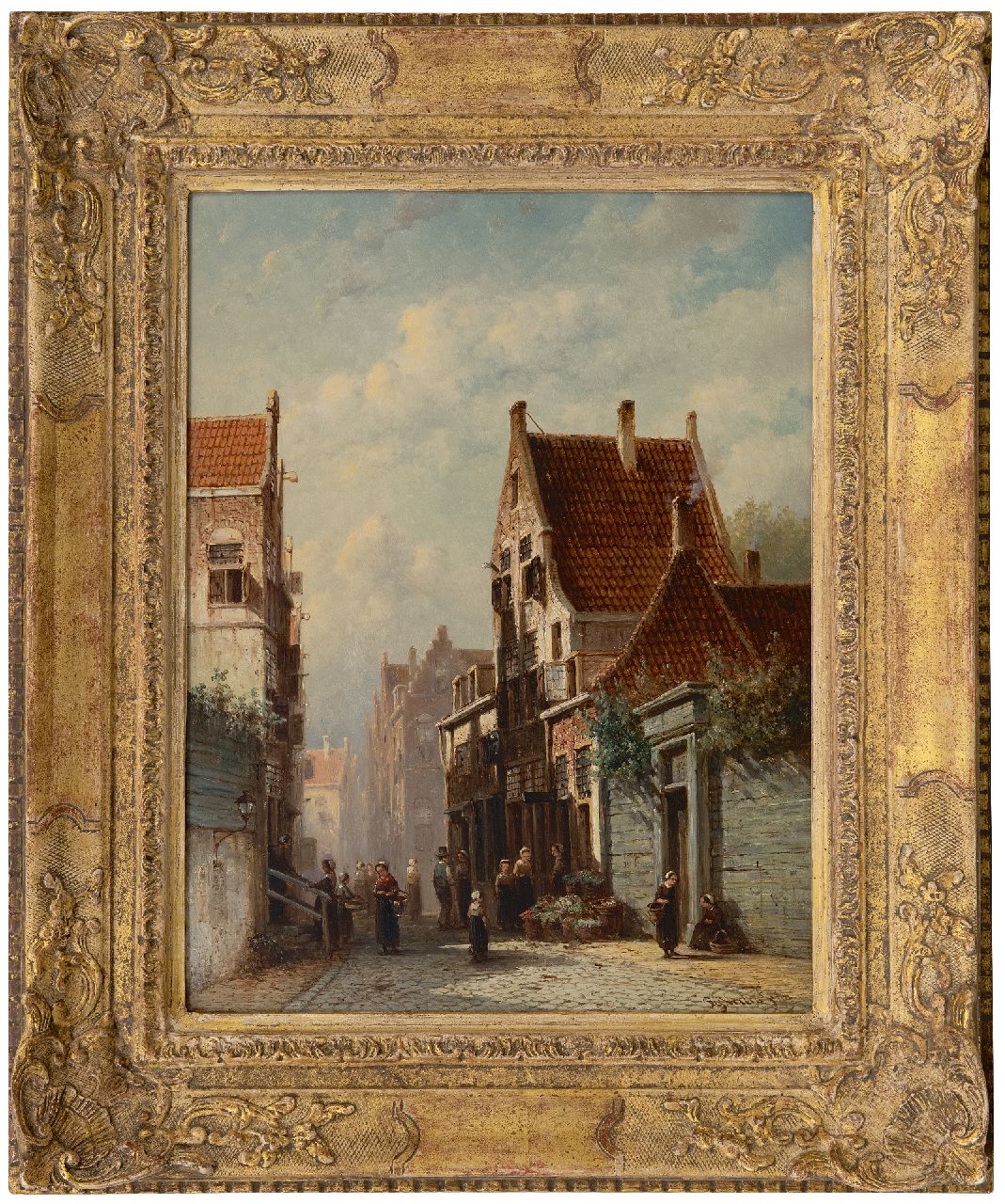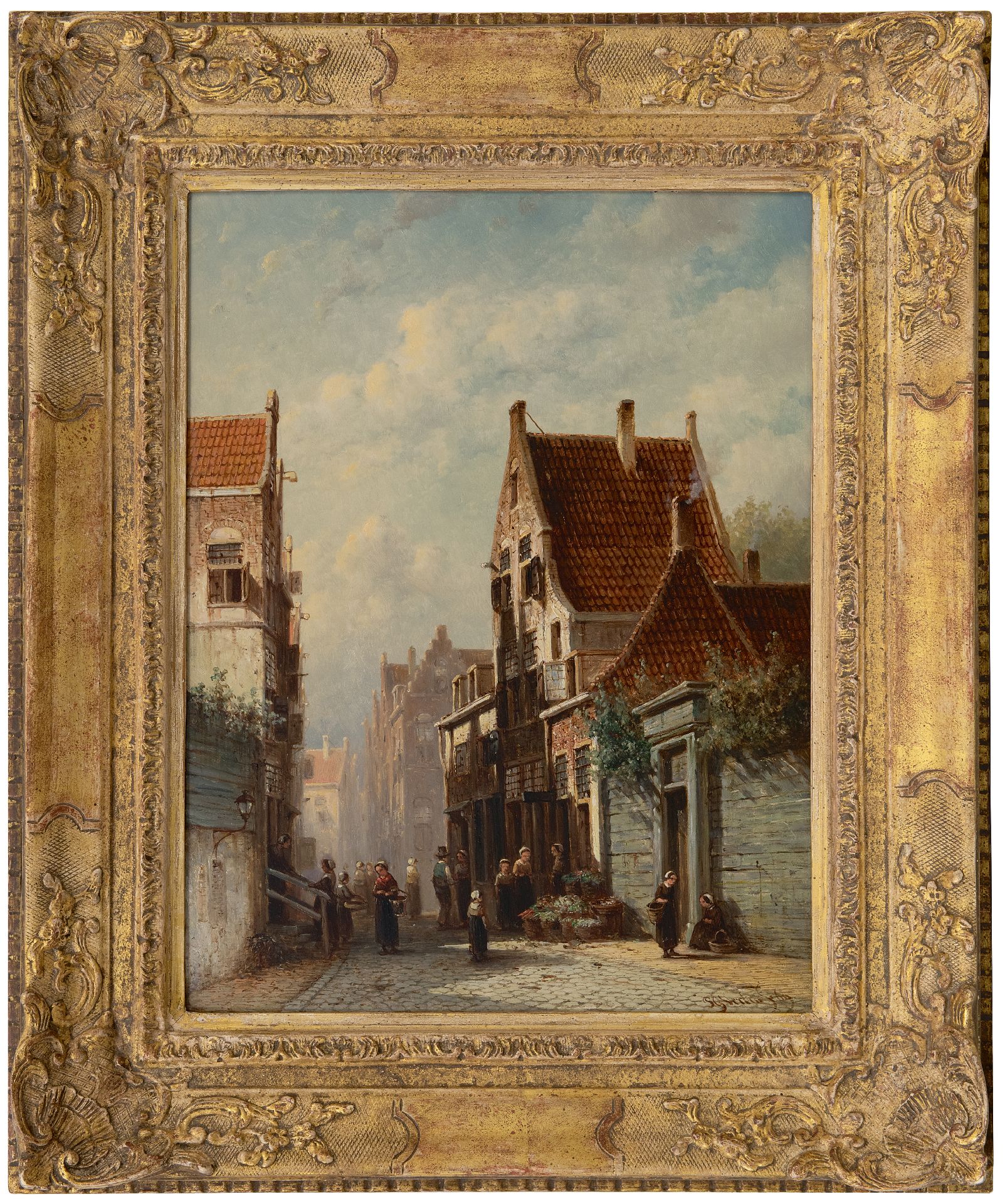 Petrus Gerardus Vertin kunstwerk • schilderij • te koop Zonnig straatje met groentestal