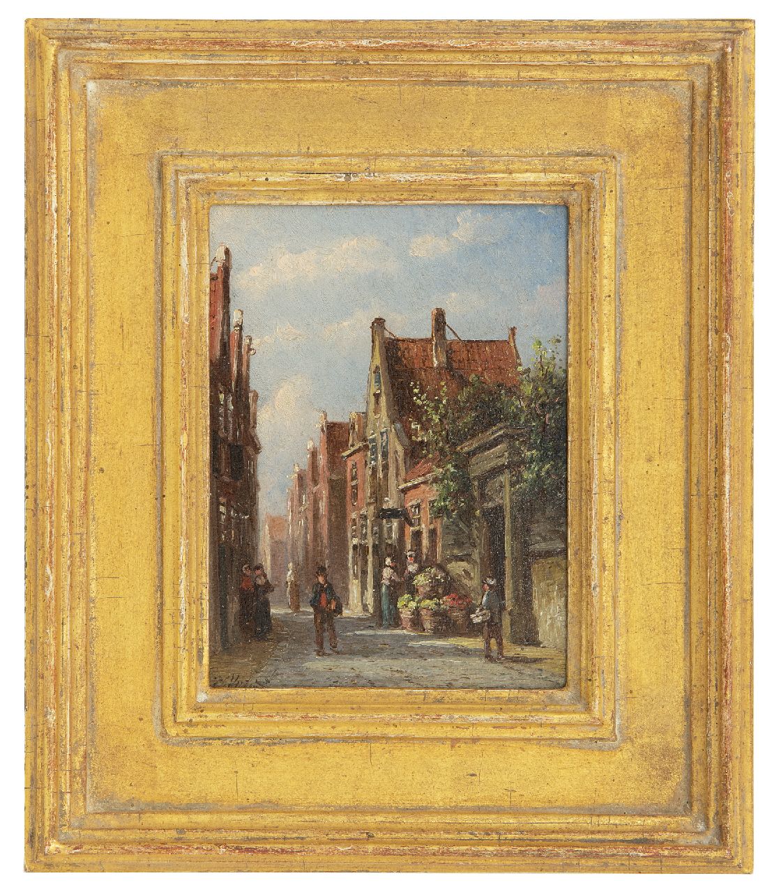 Petrus Gerardus Vertin kunstwerk • schilderij • te koop Zonnig straatje met groenteverkoopster