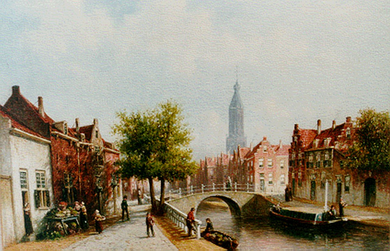 Petrus Gerardus Vertin kunstwerk • schilderij • voorheen te koop Zonovergoten stadsgracht te Enkhuizen met figuren