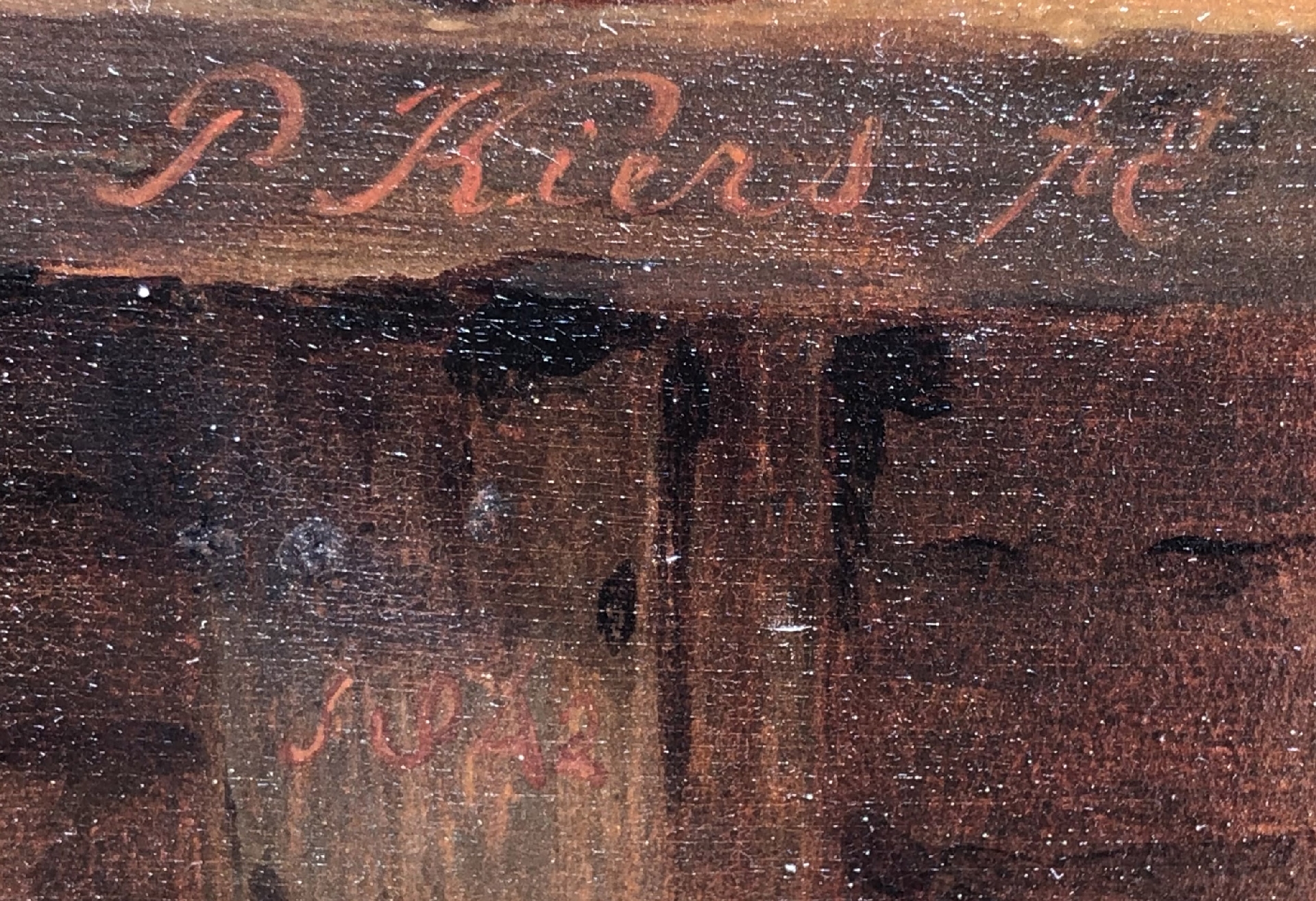 Petrus Kiers, geboren in 1807, kreeg zijn opleiding op de academie in de stad Amsterdam, waar hij ook woonde en werkte. Hij specialiseerde zich in romantische lichteffecten, zoals interieurs met kaars- en lamplicht en landschappen bij maanlicht. Petrus was getrouwd met de schilderes Elisabeth Alida Haanen, telg uit een bekend schildersgeslacht. Hun talent gaven ze allebei door aan twee van hun kinderen: Catharina Isabella, die vooral bloemen en vruchten schilderde, en George Lourens, de landschapschilder. Petrus Kiers was behalve schilder ook etser en lithograaf en hij was lid van Arti et Amicitiae.