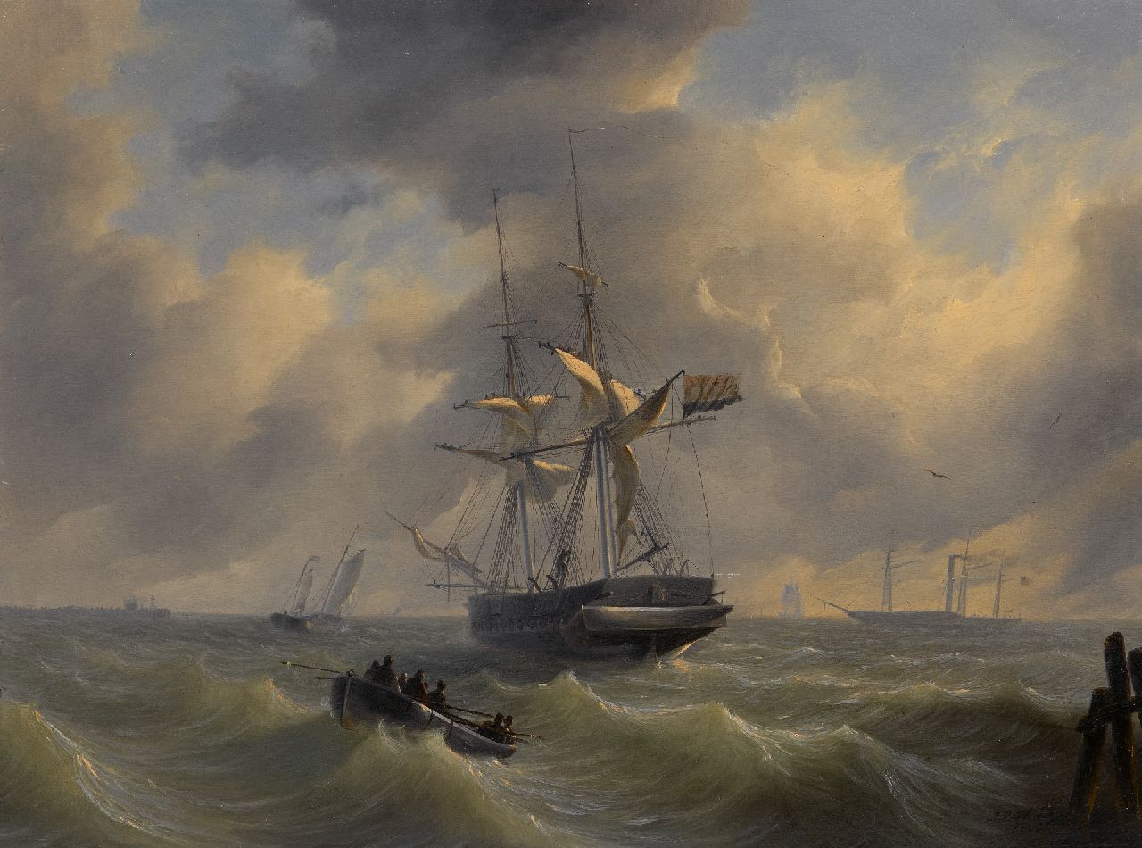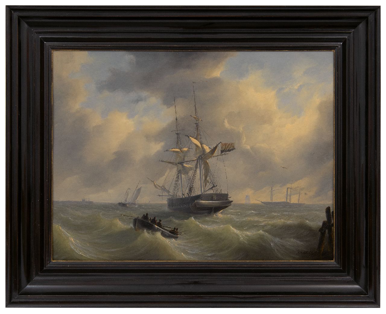 Petrus Paulus Schiedges kunstwerk • schilderij • te koop Een brik op woelige zee