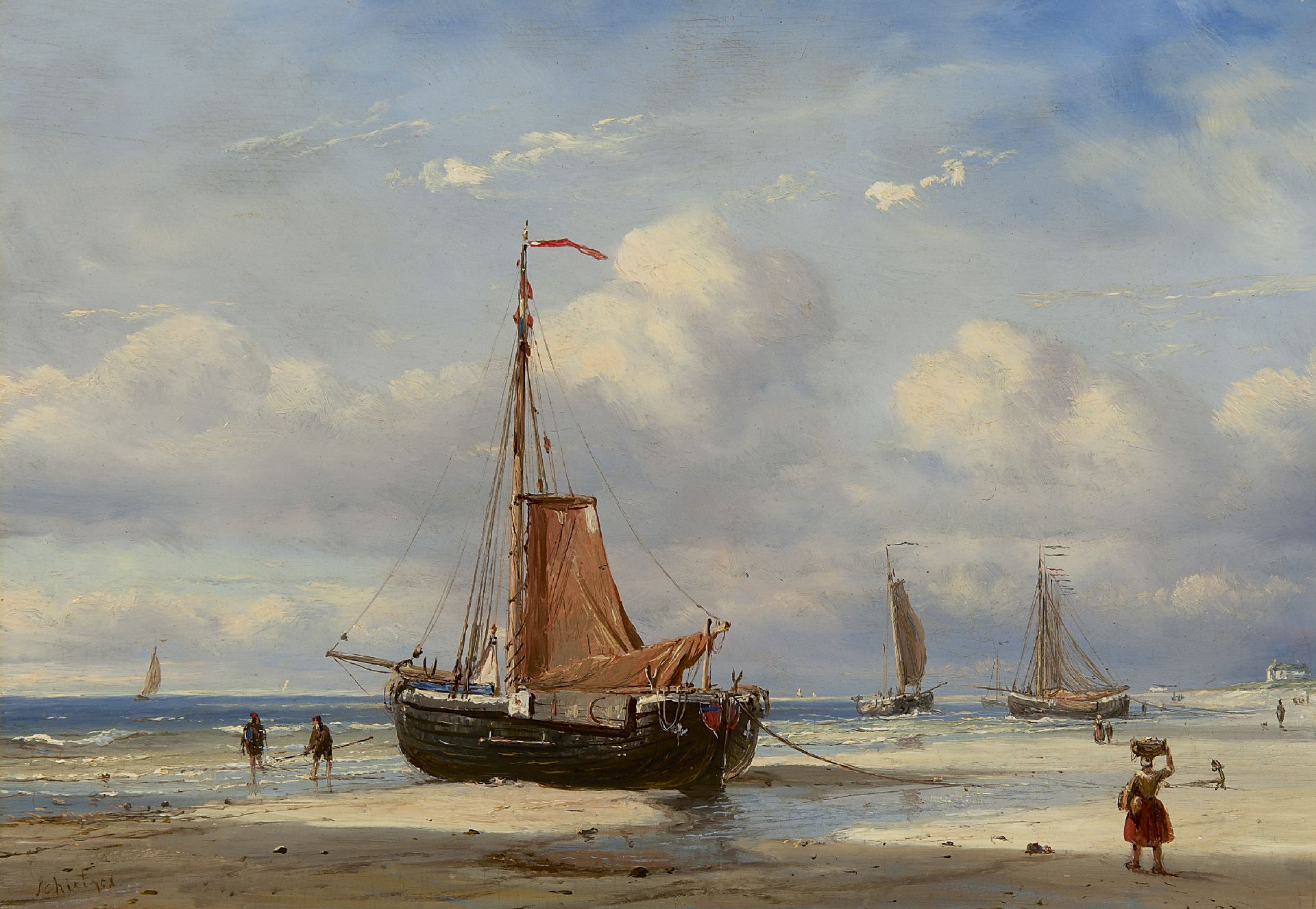Petrus Paulus Schiedges kunstwerk • schilderij • voorheen te koop Pinken op het strand van Scheveningen
