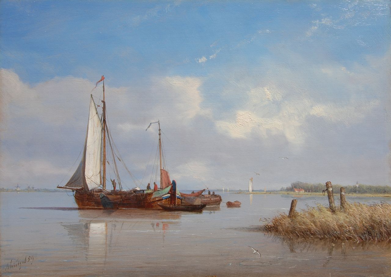 Petrus Paulus Schiedges kunstwerk • schilderij • voorheen te koop Voor anker bij kalm weer
