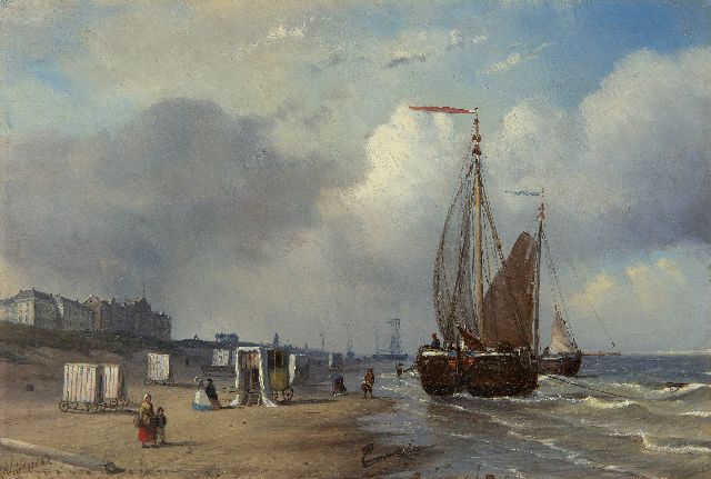 De Haagse schilder Petrus Paulus Schiedges ontwikkelde zich na zijn studie aan de Haagse Teekenacademie tot een geliefd schilder van zee- en riviergezichten met schepen. Vooral in zijn woelige, romantisch zeeën is invloed te bespeuren van de gevierde marineschilder Louis Meijer, van wie hij in de jaren veertig raadgevingen kreeg. Schiedges maakte een nauwkeurige studie van de verschillende scheepstypen die in zijn tijd de Hollandse wateren bevoeren, zodat hij in staat was ze tot in de kleinste details weer te geven.