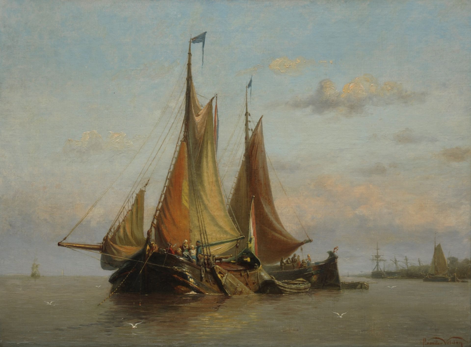 Petrus van der Velden kunstwerk • schilderij • voorheen te koop Hektjalk en poon voor anker