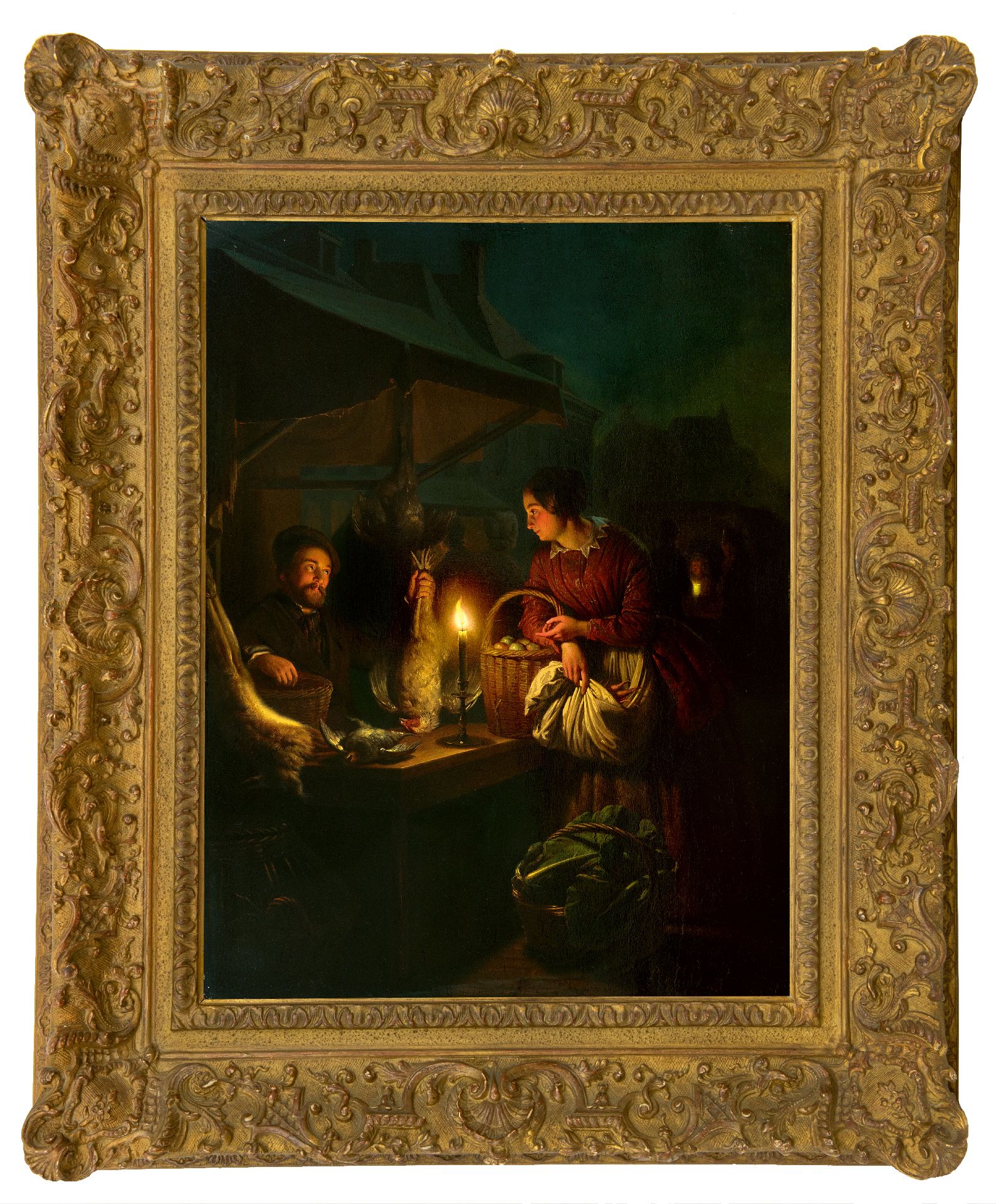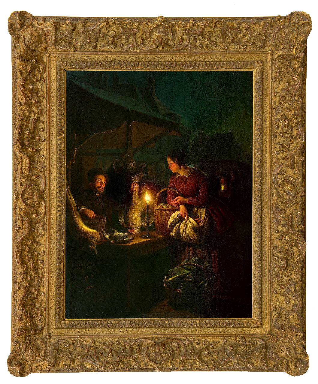 Petrus van Schendel kunstwerk • schilderij • voorheen te koop Wild- en gevogelteverkoper bij kaarslicht