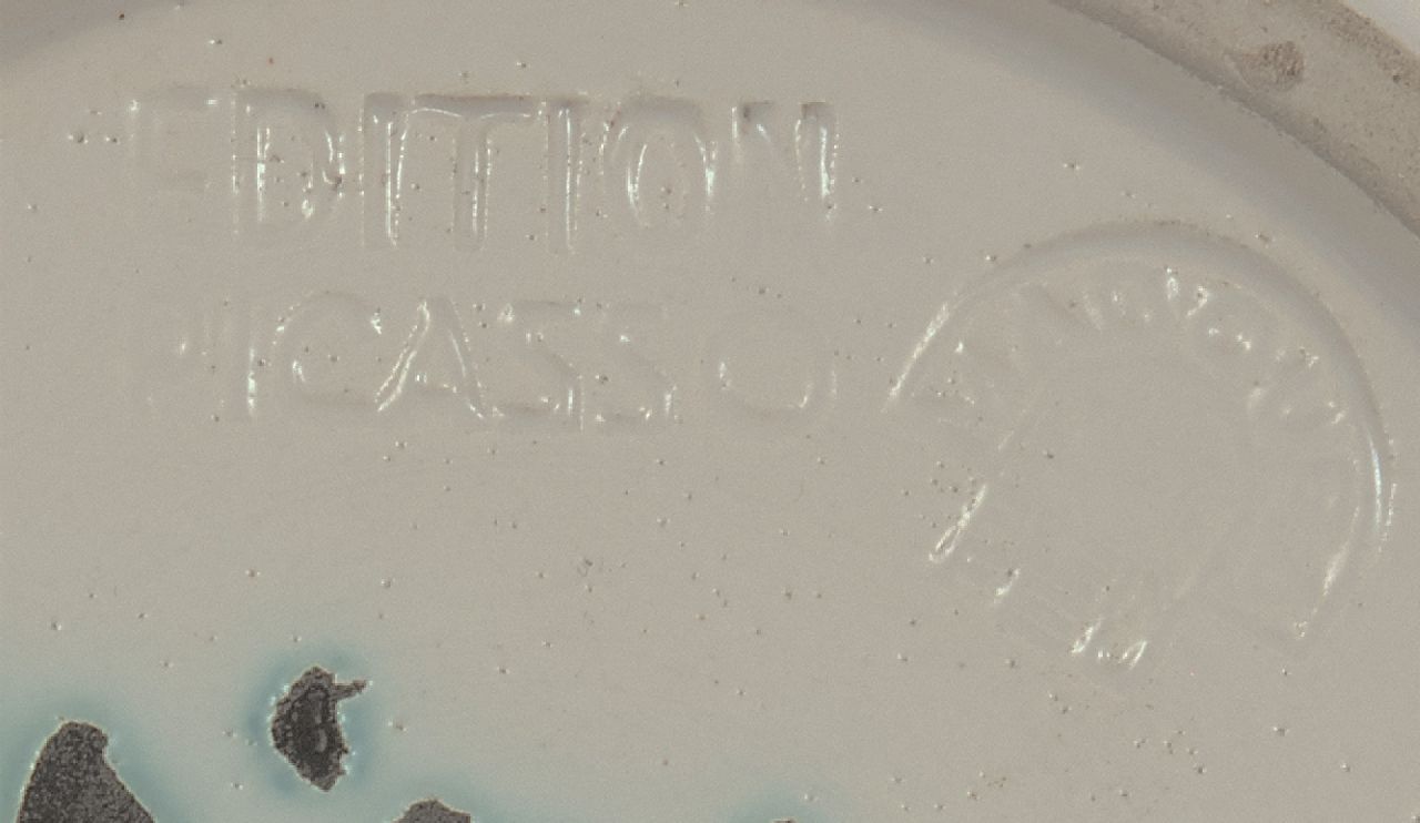 annotatie met verso in stempel en geoxideerd glazuur: 'EDITION PICASSO' en in stempel 'Madoura'