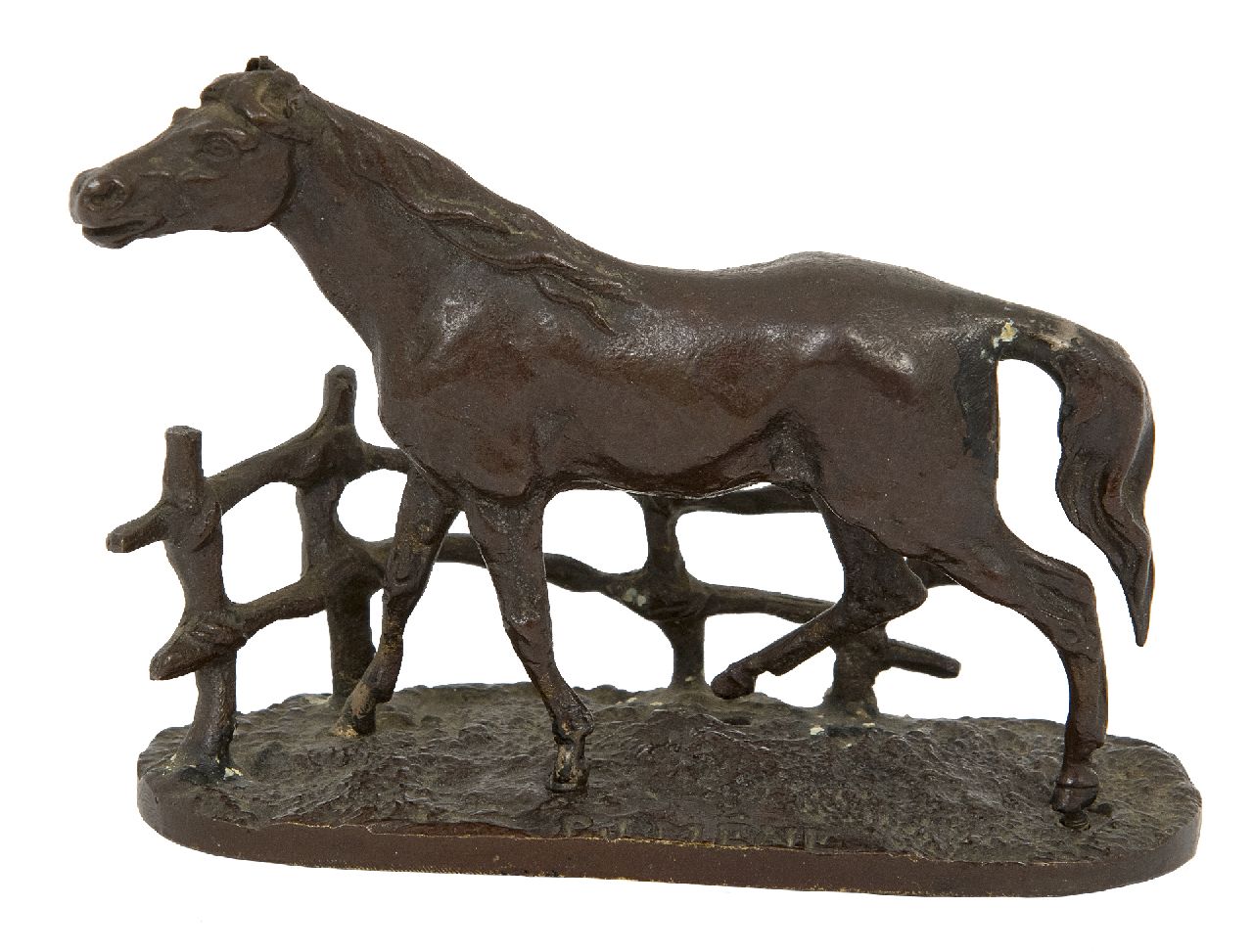 Pierre Jules Mène kunstwerk • beeld • sculptuur • te koop Paard bij een hek