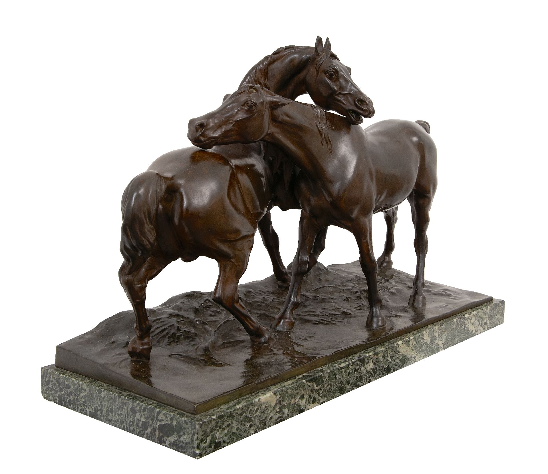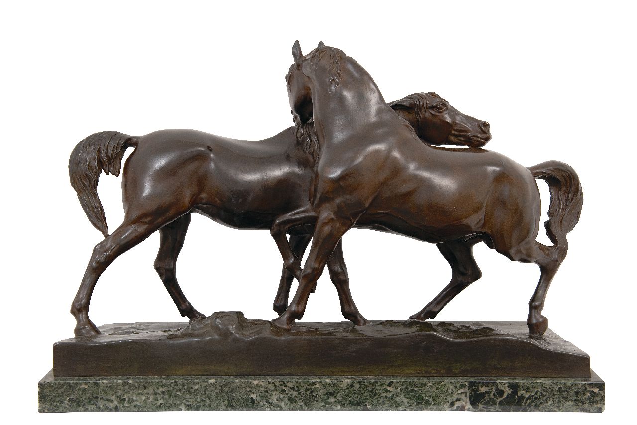 Pierre Jules Mène kunstwerk • beeld • sculptuur • voorheen te koop Twee paarden (postuum gegoten)