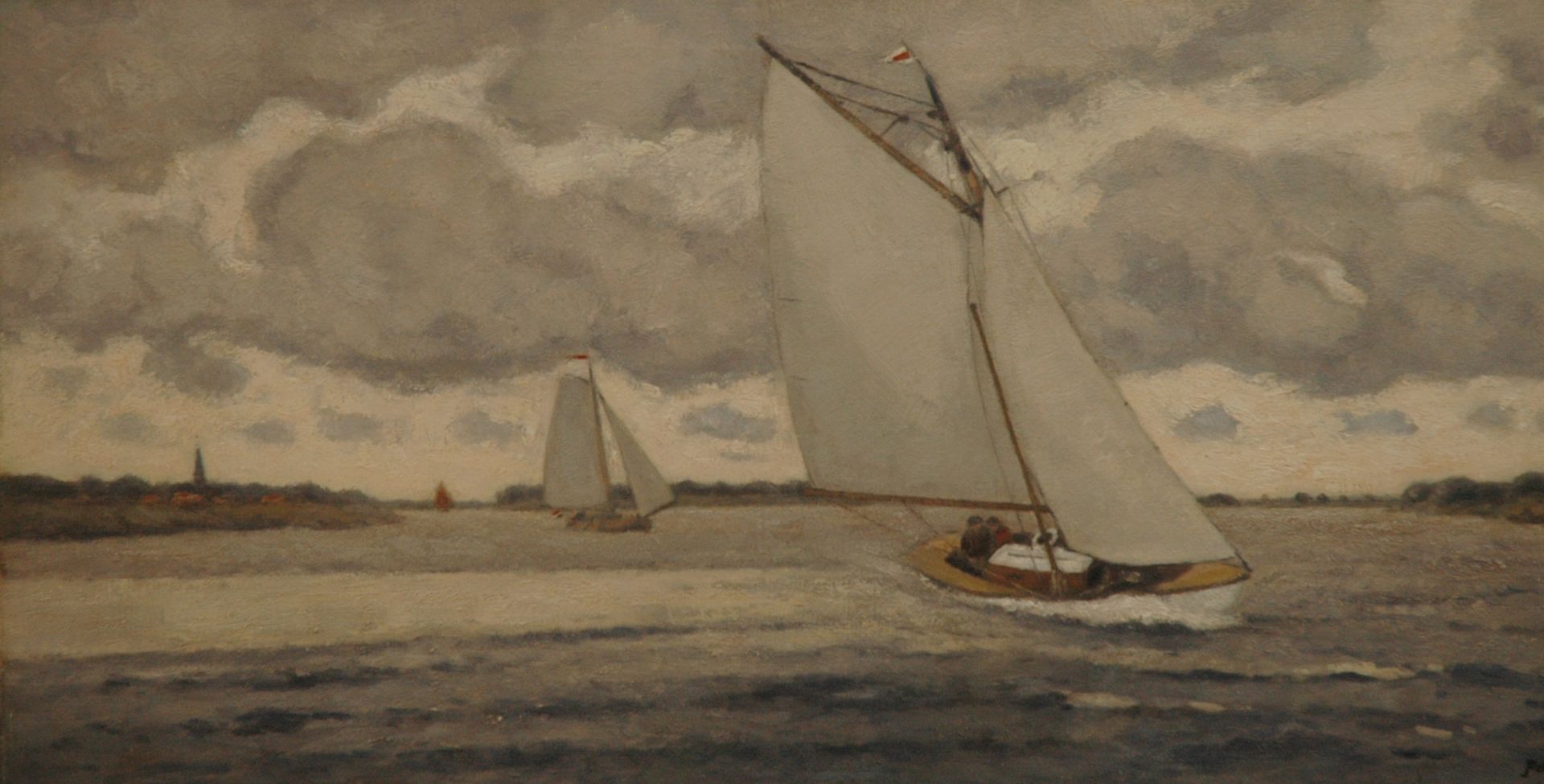 Piet de Regt kunstwerk • schilderij • voorheen te koop Zeilschepen op een Hollandse plas