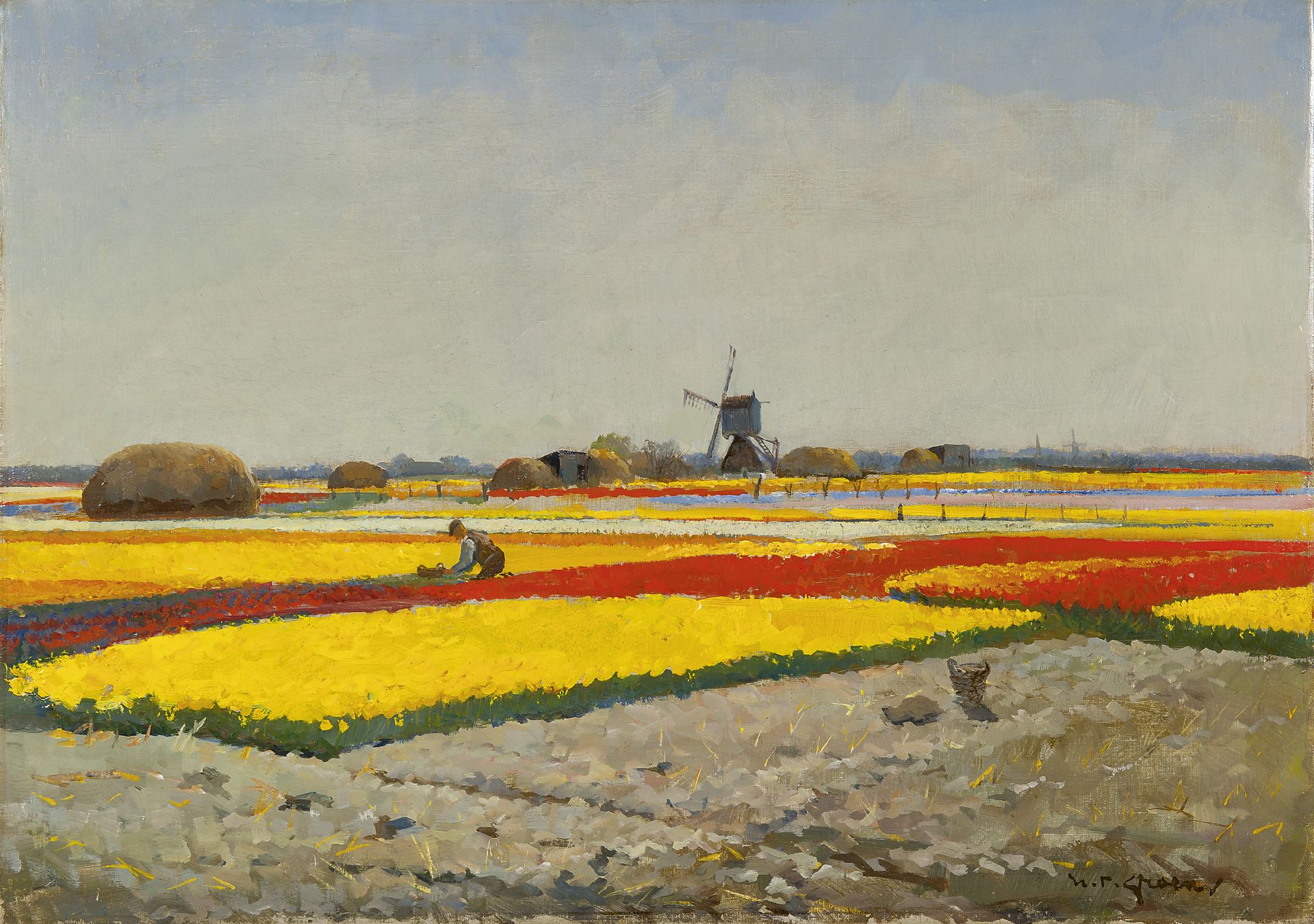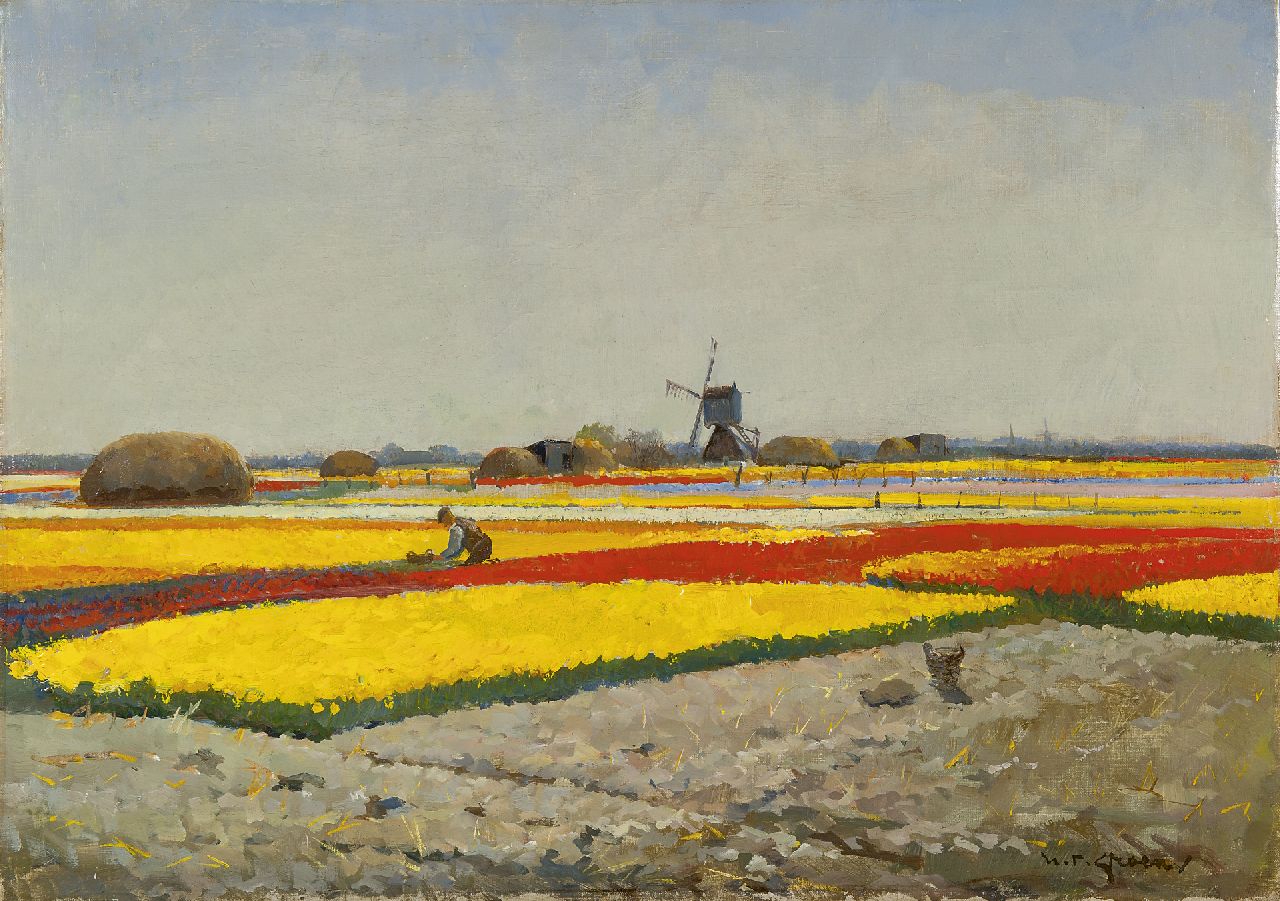 Piet Groen kunstwerk • schilderij • voorheen te koop Bloeiende tulpenvelden