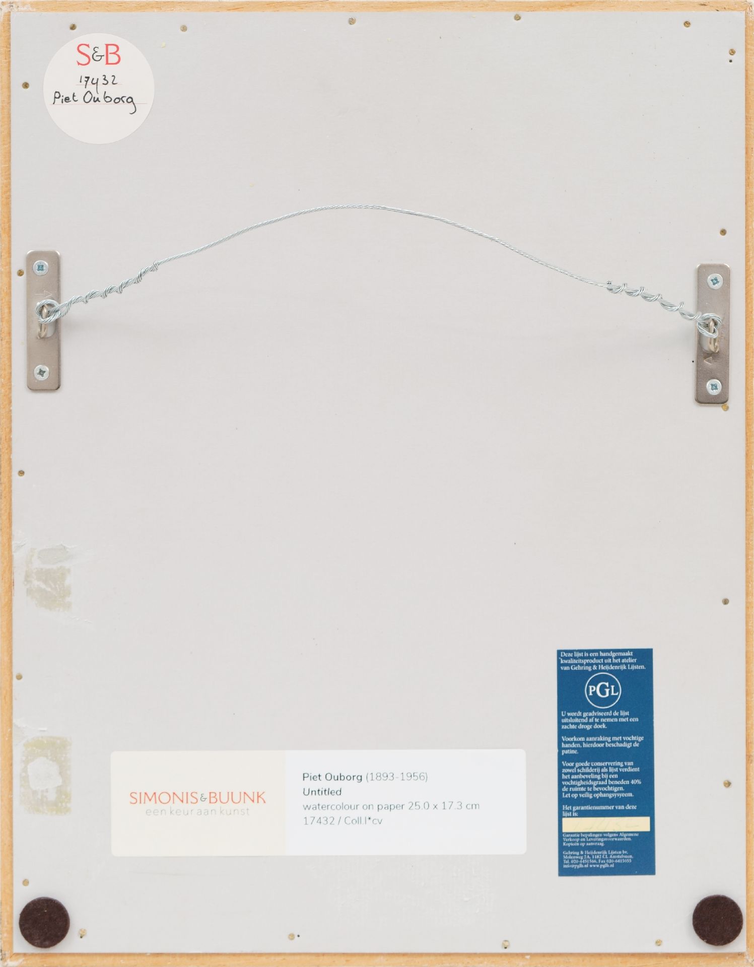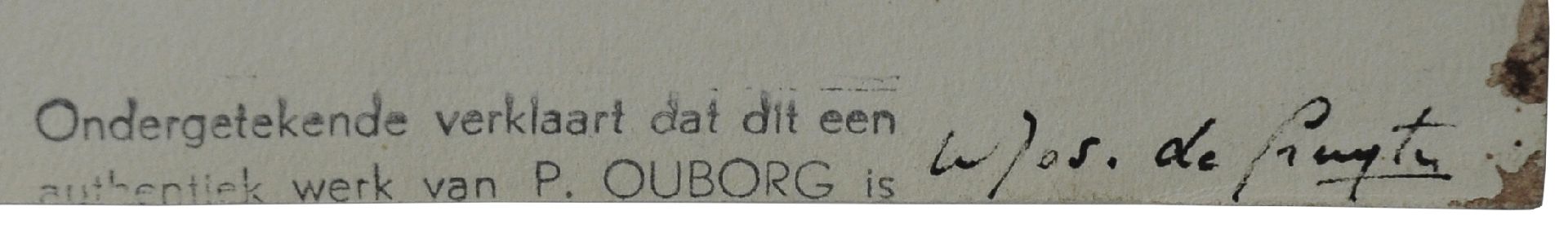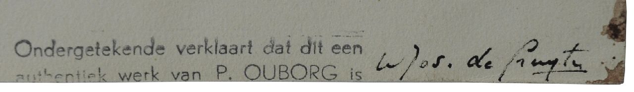 Herkomst: Met verso echtheidsverklaring van Jos de Gruyter: 'Ondergetekende verklaart dat dit een authentiek werk van P. Ouborg is. W. Jos. de Gruyter' en nr. 1386.