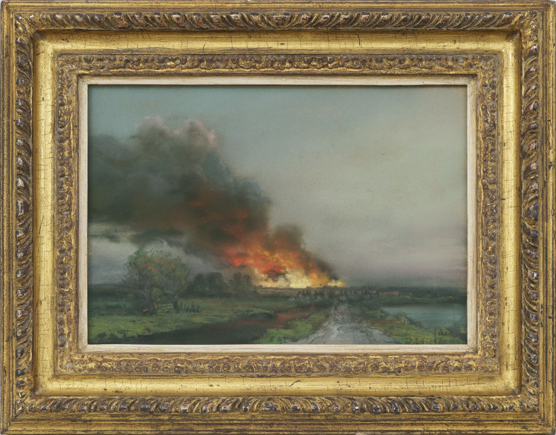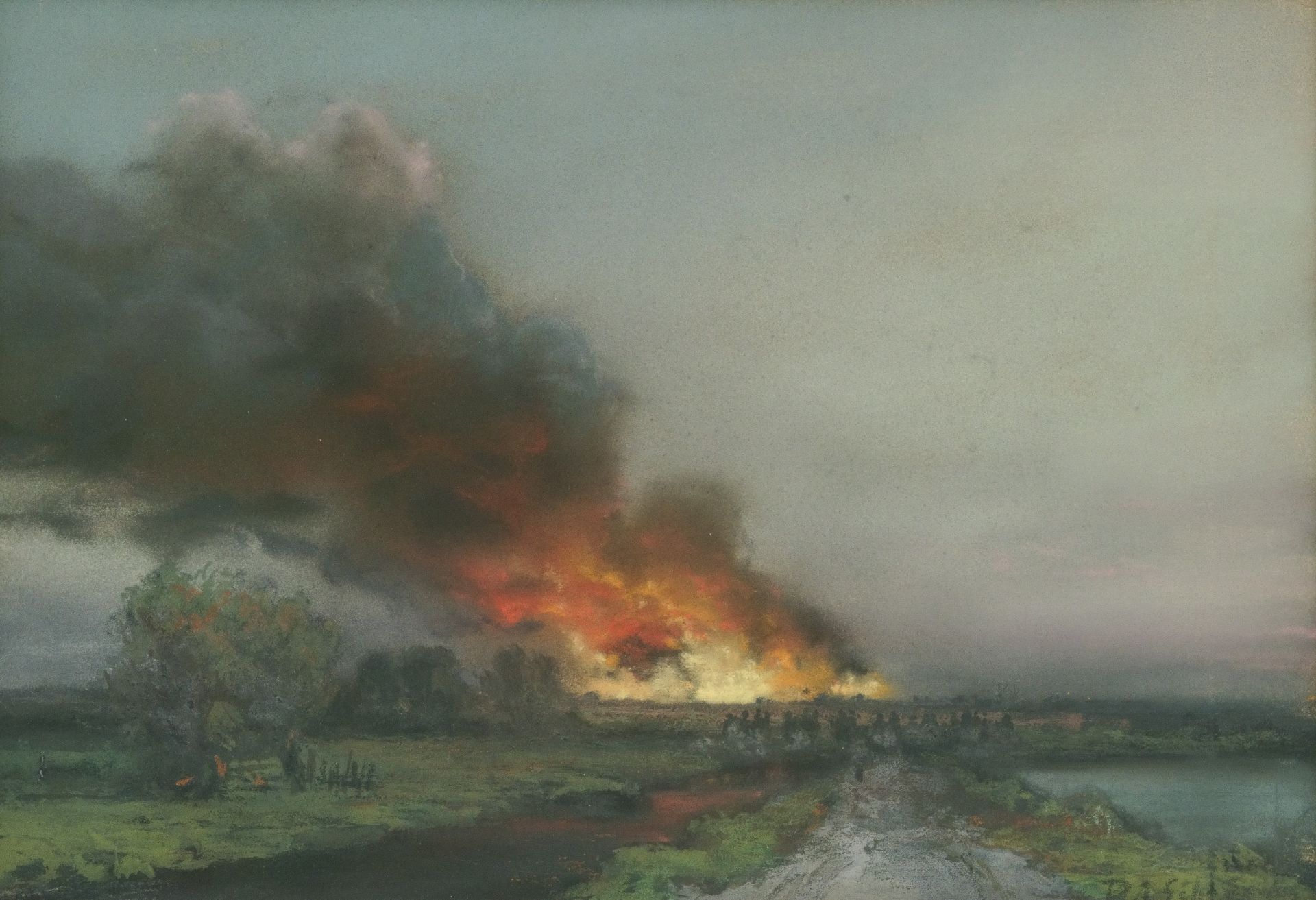 Piet Schipperus kunstwerk • aquarel • tekening • te koop Brand aan de horizon