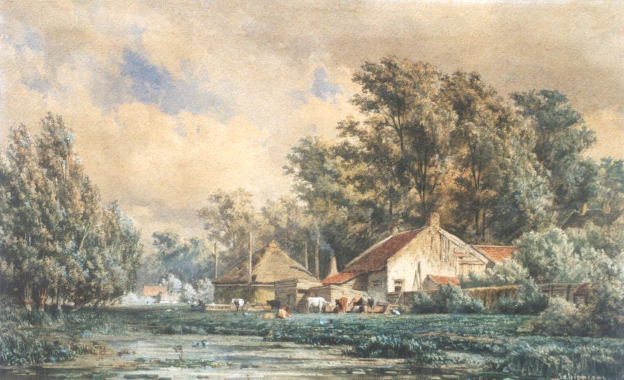 Piet Schipperus | Boerenerfje in het bos, aquarel op papier, 21,2 x 30,4 cm, gesigneerd r.o.
