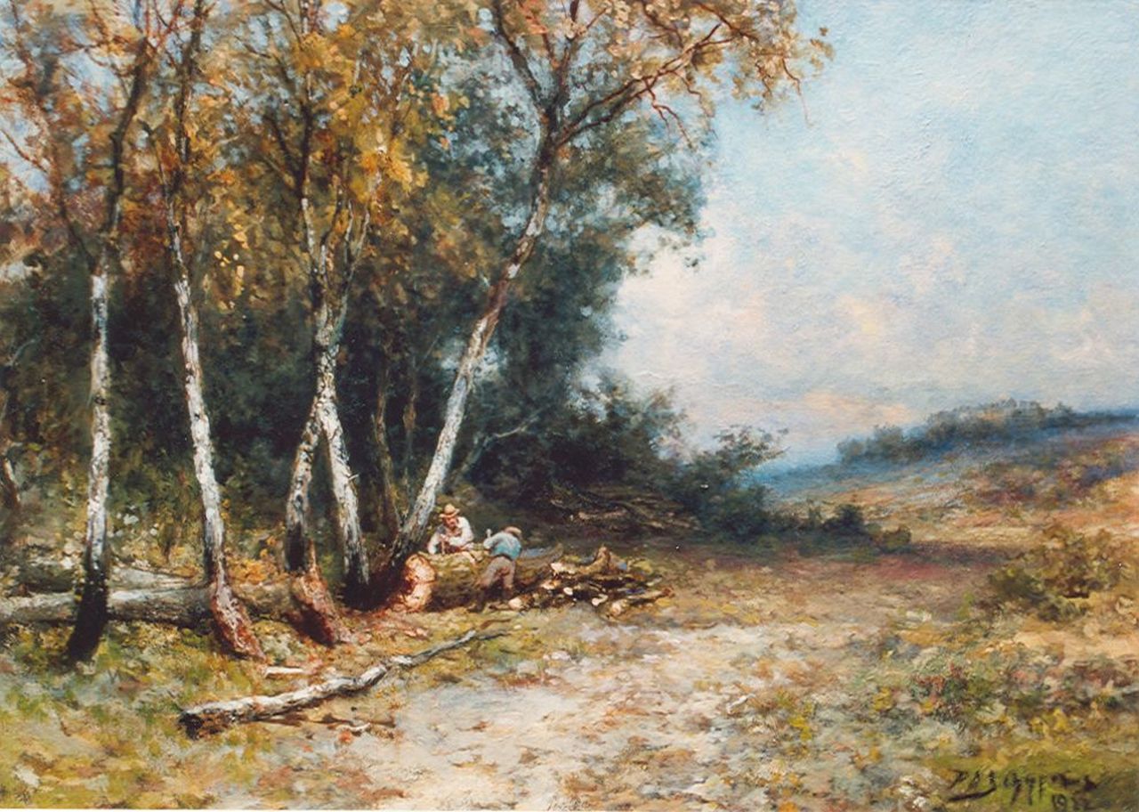 Piet Schipperus kunstwerk • schilderij • voorheen te koop Houthakkers aan de bosrand