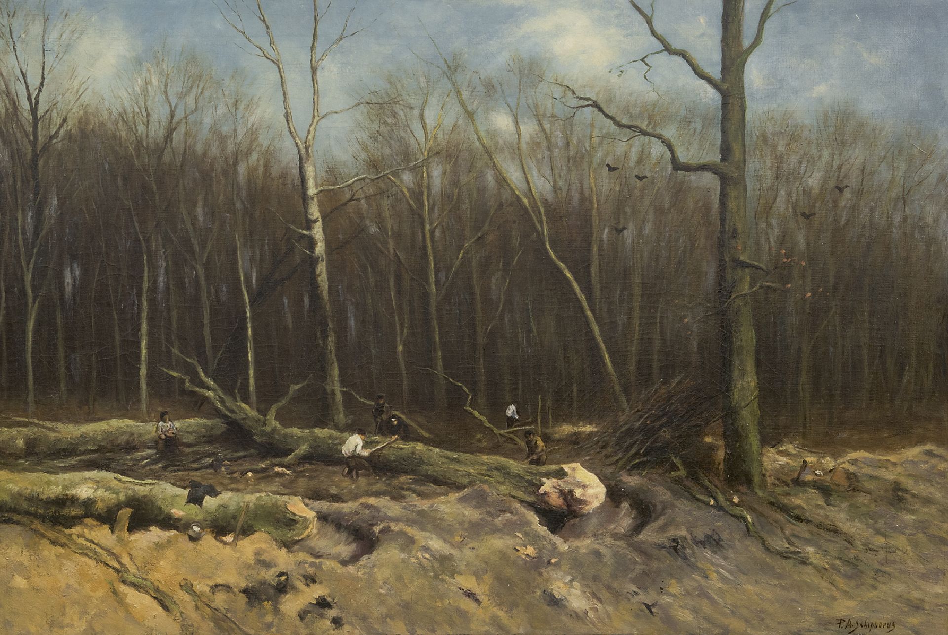 Piet Schipperus kunstwerk • schilderij • te koop Houthakkers aan het werk