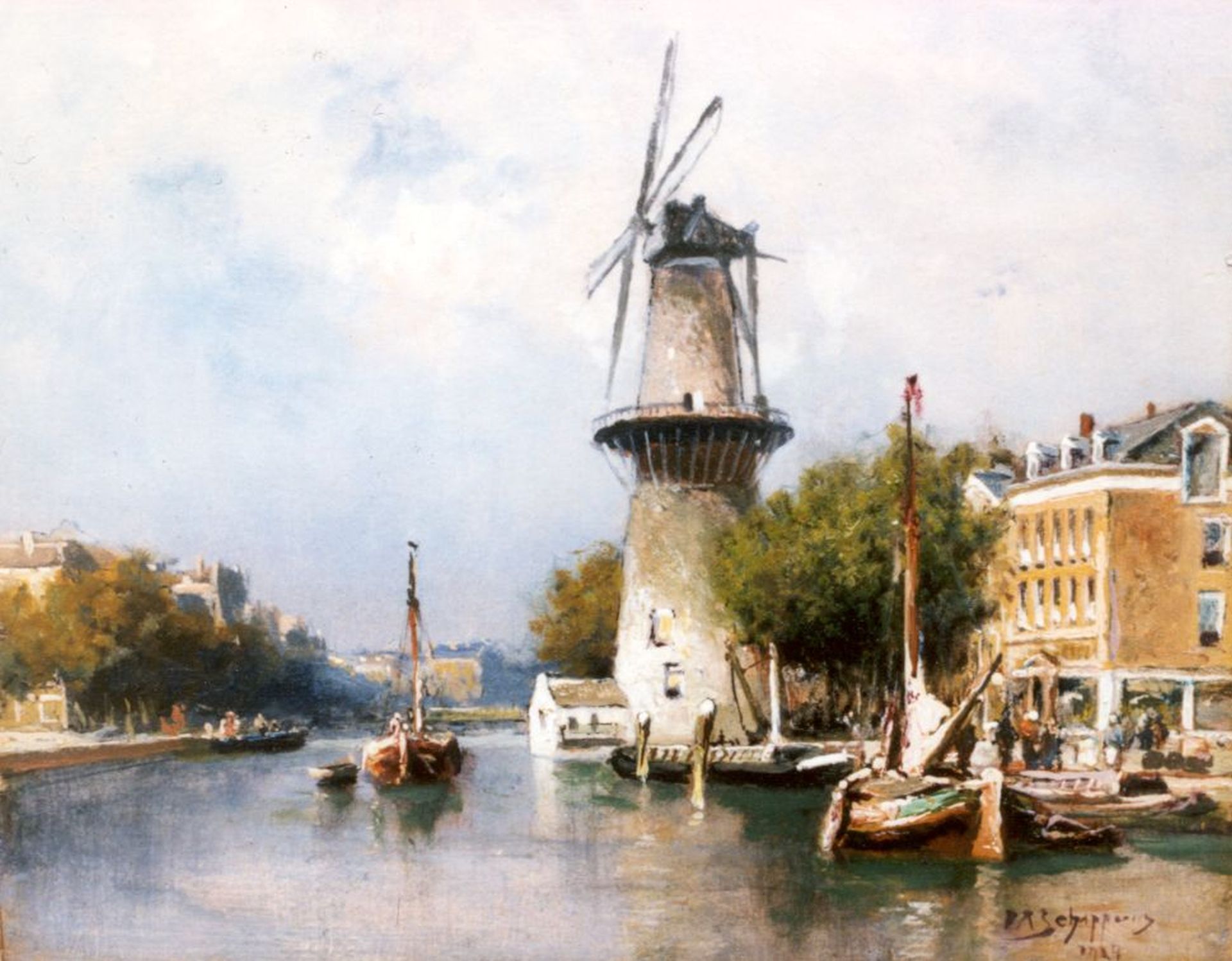Piet Schipperus kunstwerk • schilderij • voorheen te koop Molen aan het Coolvest te Rotterdam