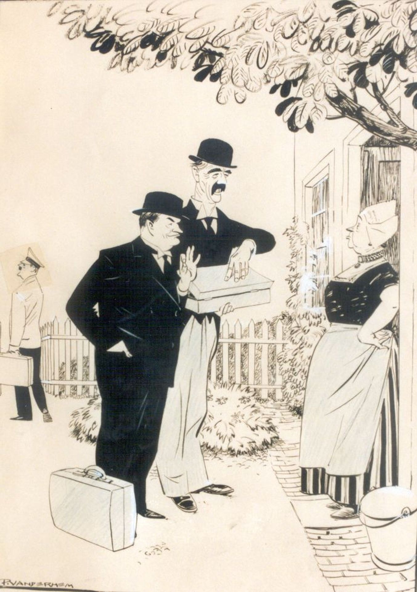Piet van der Hem kunstwerk • aquarel • tekening • voorheen te koop Aan de deur wordt niet gekocht