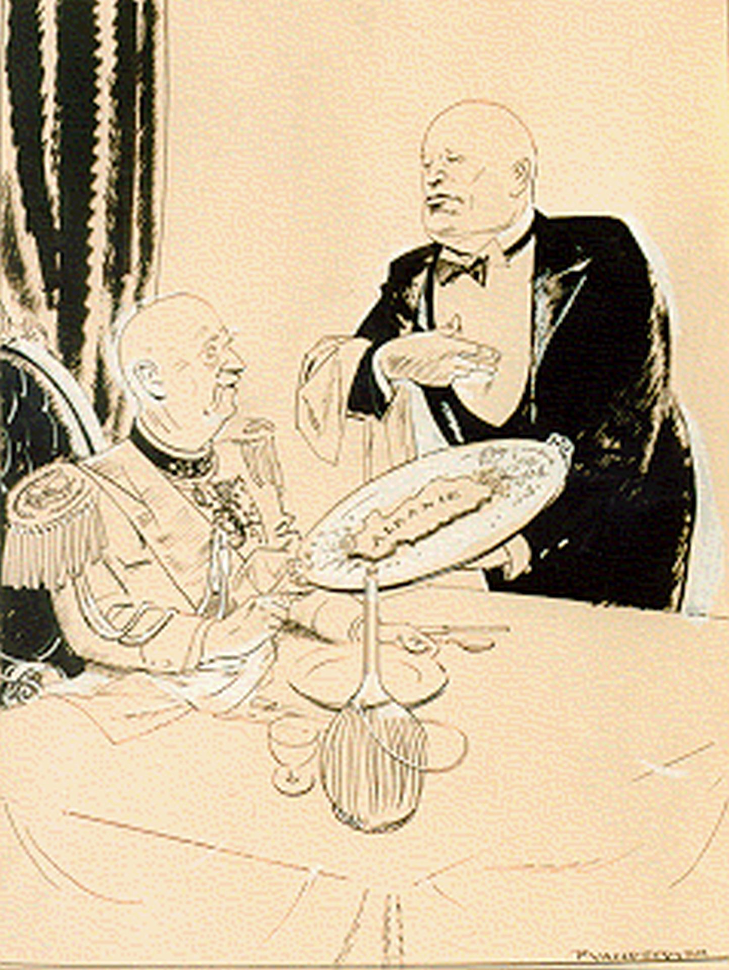 Piet van der Hem kunstwerk • aquarel • tekening • voorheen te koop Albanie op een presenteerblaadje