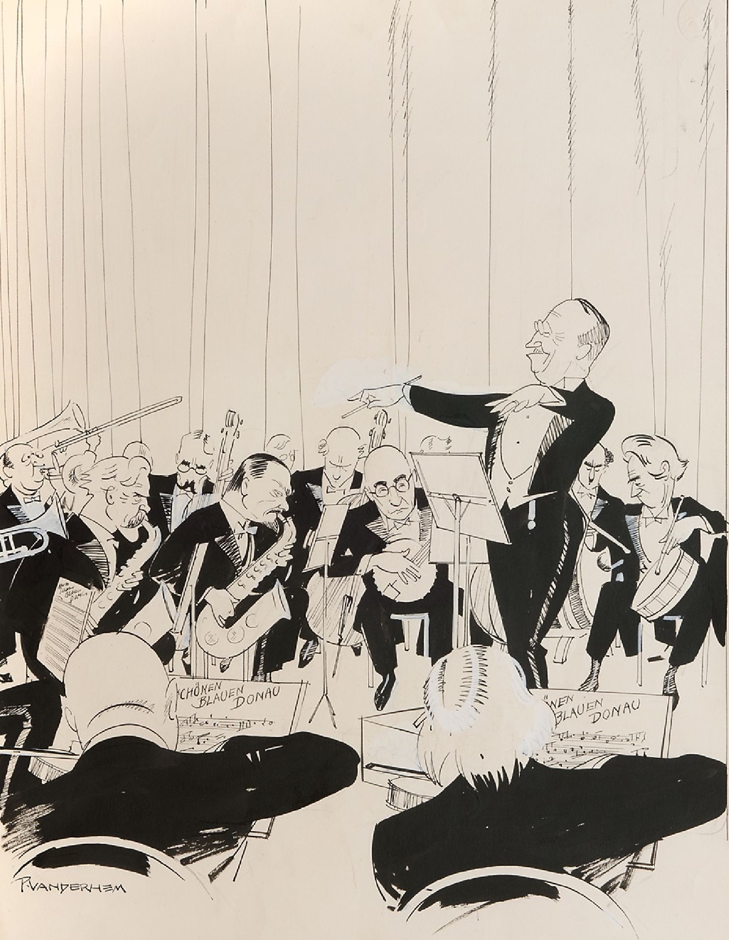 Hem P. van der | Pieter 'Piet' van der Hem, An der schönen blauen Donau, inkt en aquarel op papier 50,1 x 35,0 cm, gesigneerd linksonder