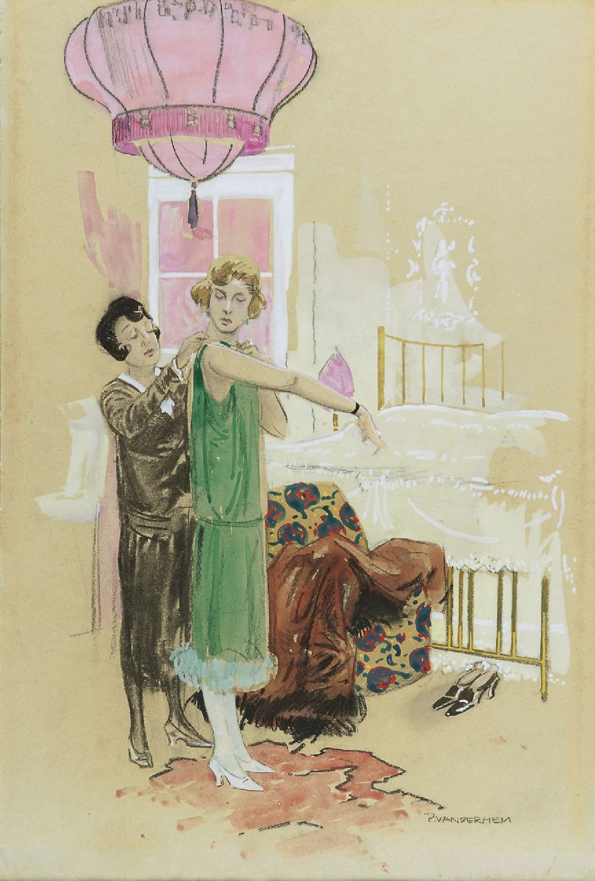 Piet van der Hem kunstwerk • aquarel • tekening • voorheen te koop De 'finishing touch'
