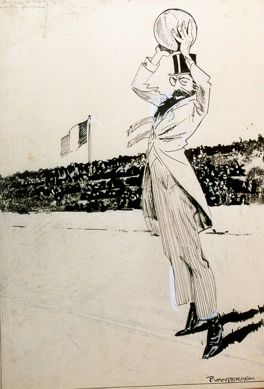 Piet van der Hem kunstwerk • aquarel • tekening • voorheen te koop De scheidsrechter