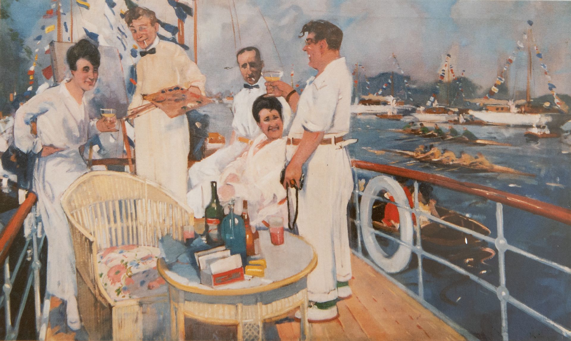 De schilder in vrolijk gezelschap tijdens een regatta