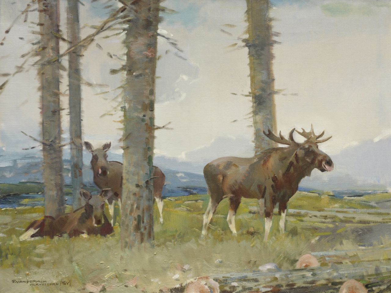 Piet van der Hem kunstwerk • schilderij • voorheen te koop Elanden bij Alkvettern, Zweden