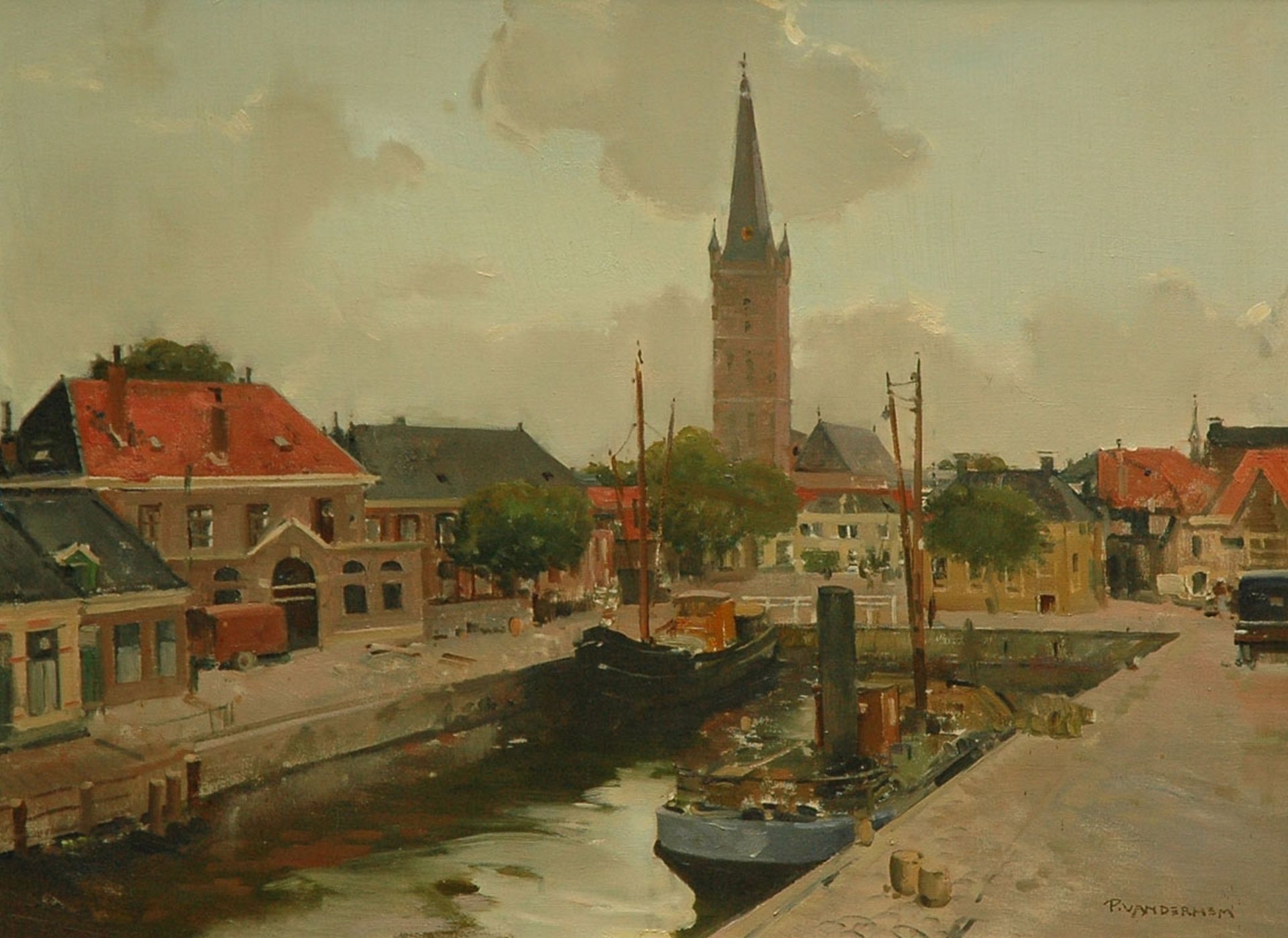 Piet van der Hem kunstwerk • schilderij • voorheen te koop Gezicht op Steenwijk, met de Grote of Sint Clemenskerk