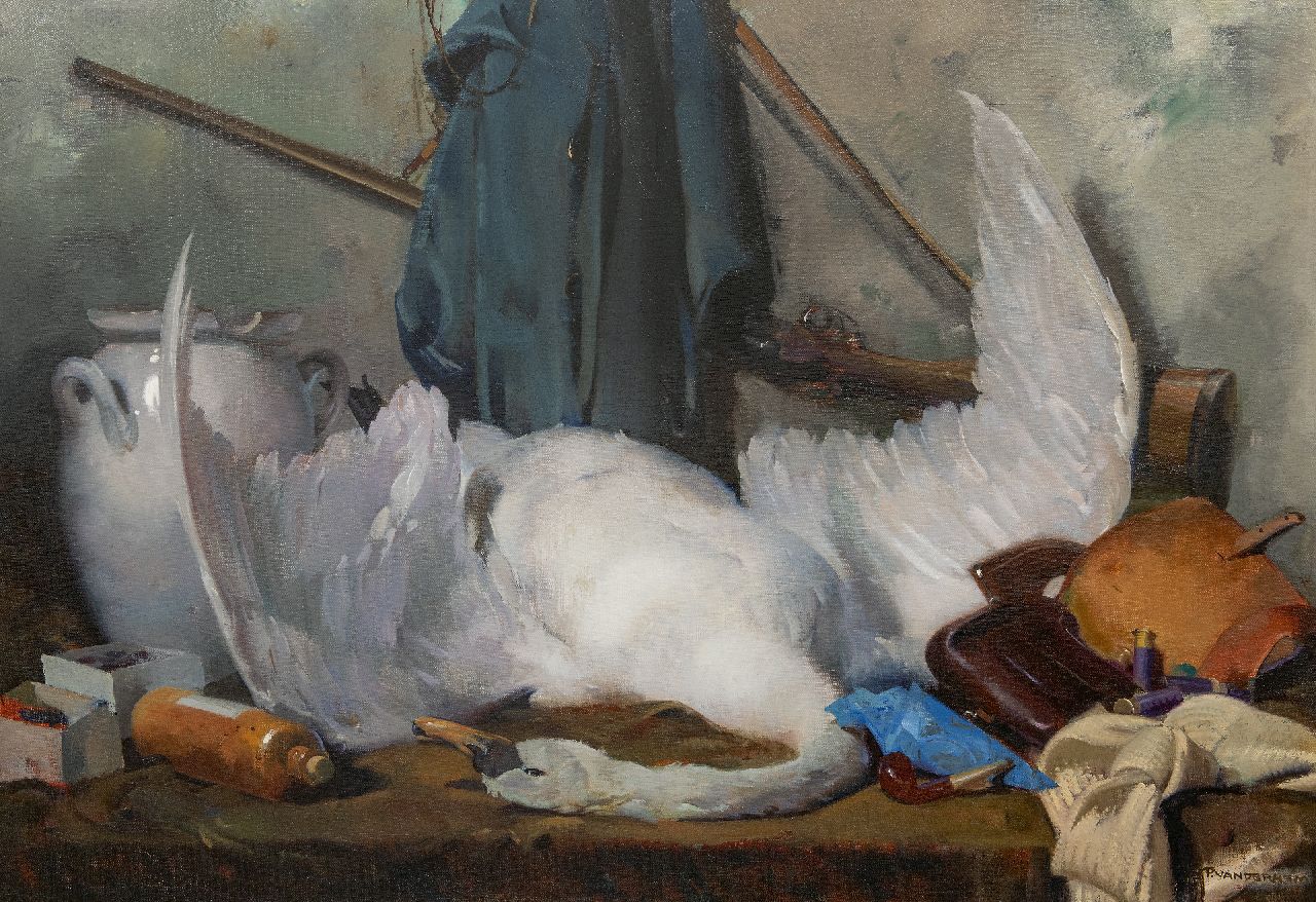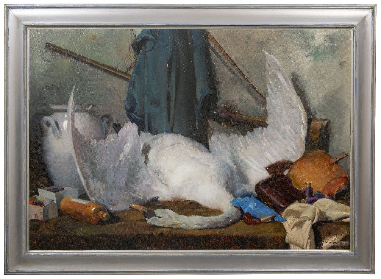 Piet van der Hem kunstwerk • schilderij • te koop Jachtstilleven met zwaan