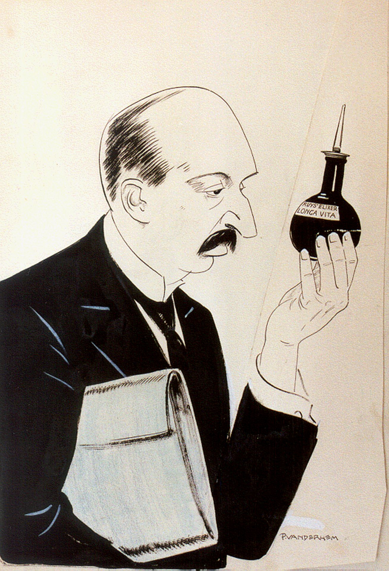 Piet van der Hem kunstwerk • aquarel • tekening • voorheen te koop Ruys' Elixer, Longa Vita