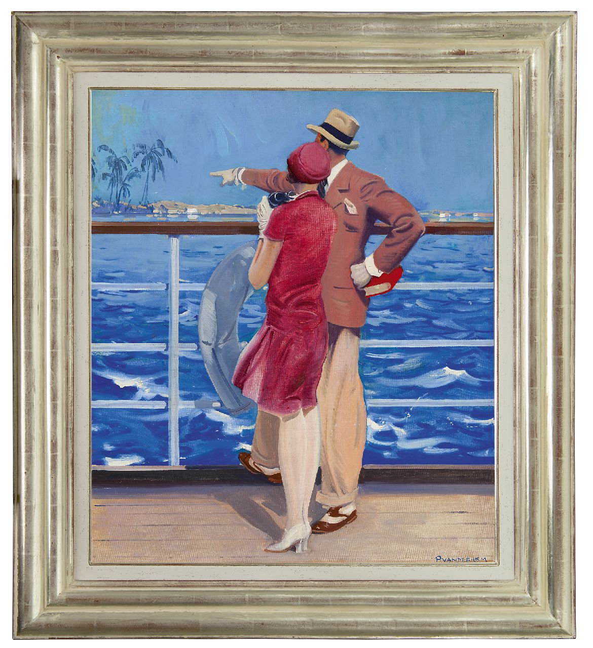 Piet van der Hem kunstwerk • schilderij • voorheen te koop Wintervakantie in de tropen met de K.N.S.M.