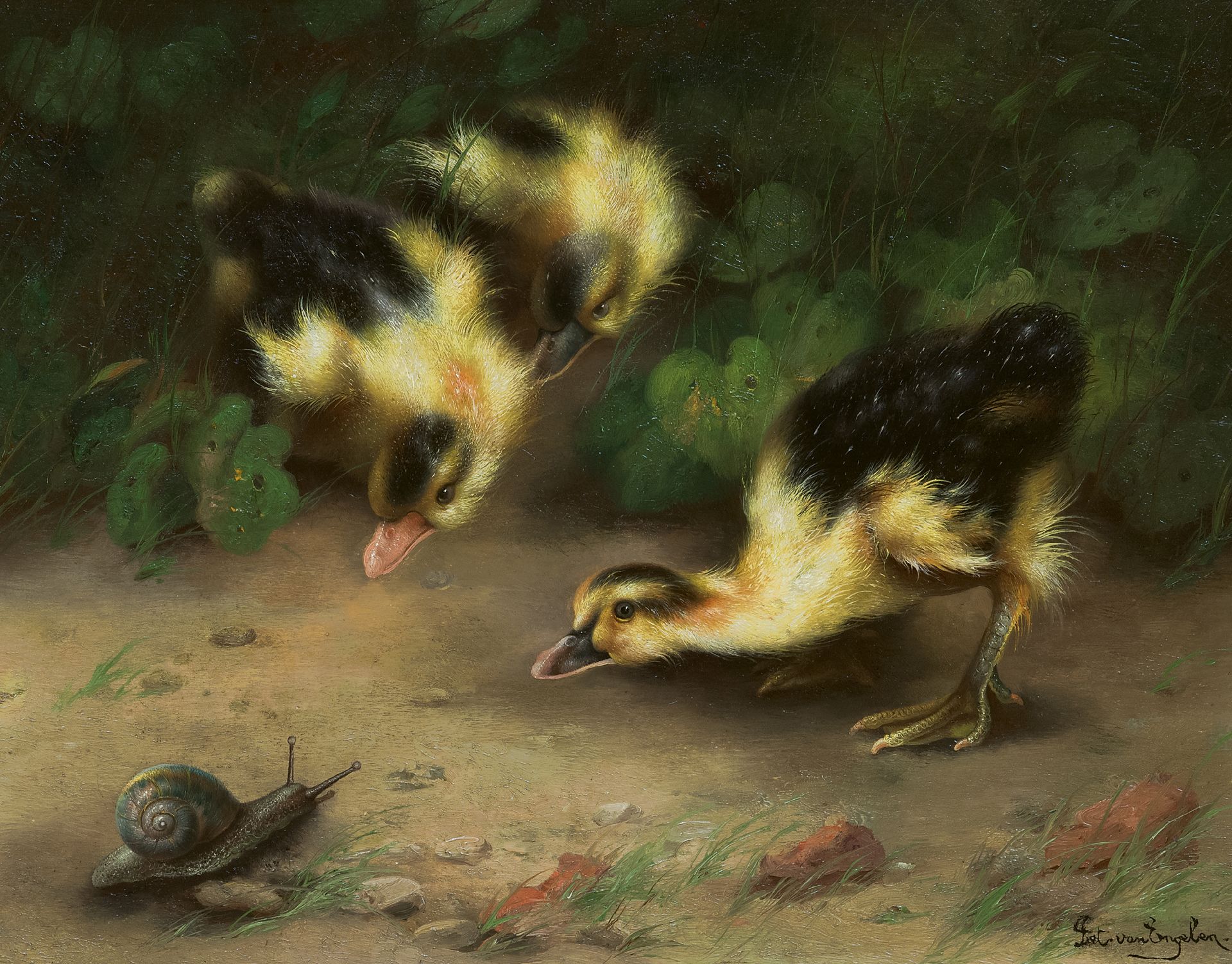 Piet van Engelen maakte naam met dierportretten en genretaferelen. Zijn dieren plaatst hij vaak in knappe of ongewone composities, al dan niet verhalend of met een humoristische ondertoon. Net als zijn zeven jaar oudere broer Louis van Engelen werd hij opgeleid aan de academie van Antwerpen, een stad waar hij bleef wonen en werken. Op 35-jarige leeftijd werd hij als talentvol kunstenaar benoemd tot professor aan deze academie.
